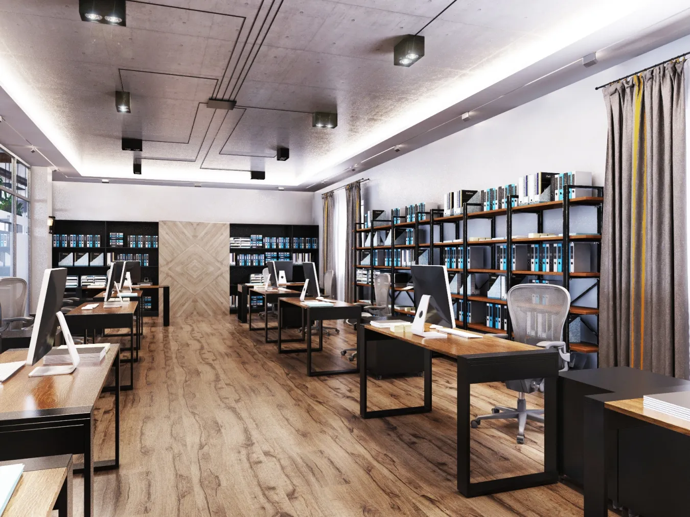 Типичные для лофта цвета - белый, черный, серый, коричневый с преобладанием спокойной светлой палитры. Яркие краски тоже допустимы, но они не должны бросаться к глаза и отвлекать сотрудников от рабочих процессов.