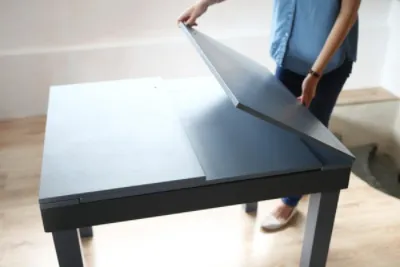Многие покупатели, придя в магазин с целью покупки стола, отвергают предложения о раскладных конструкциях, объясняя это сложностью постоянной трансформации мебели. Но современные модели оснащены чрезвычайно удобным механизмом, который позволяет легко справляться с этой задачей даже подростку. Наиболее распространенными и привычными являются раздвижные варианты с одной центральной вставкой. Существуют также усовершенствованные столы с двумя поворотными центральными элементами. По сути, их механизм увеличения обеденной площади это две спрятанные в подстолье центральные планки. Для раскладывания данной конструкции необходимо потянуть края столешницы в разные стороны. Они открывают вставки, которые затем необходимо повернуть и сдвинуть с частями столешницы.