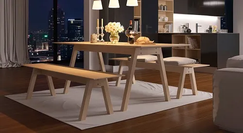 - В сумерках мебель из сосны выглядит намного светлее других пород. Древесина выделяет фитонциды, которые создают благоприятный микроклимат в помещениях.
