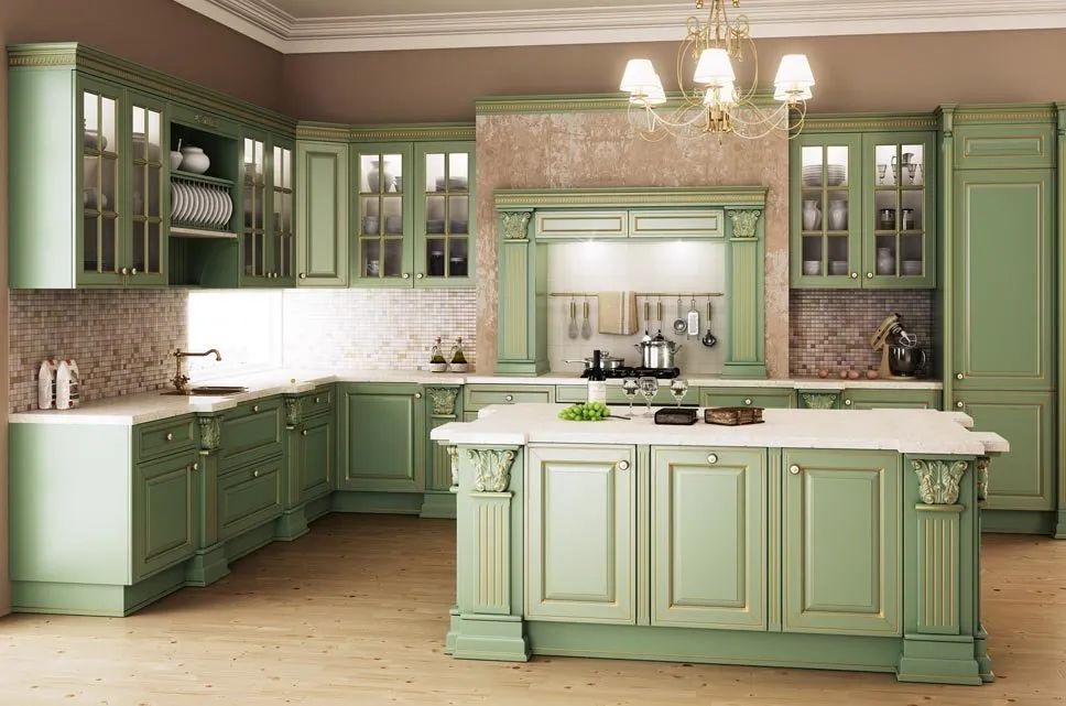 Кухонные гарнитуры винтажного стиля уже предусматривали включение современных технических элементов. Основой стиля стал своеобразный симбиоз уютного комфорта и функциональной современности.