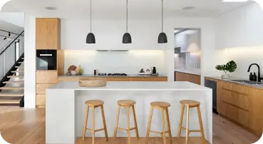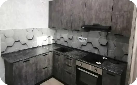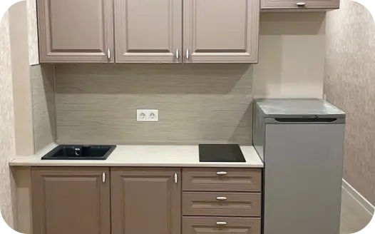 Профессиональные сборщики произведут полный монтаж заказанной вами кухни: расставят и навесят модули, установят столешницу, плинтуса, стеновую панель, технику и т.д.