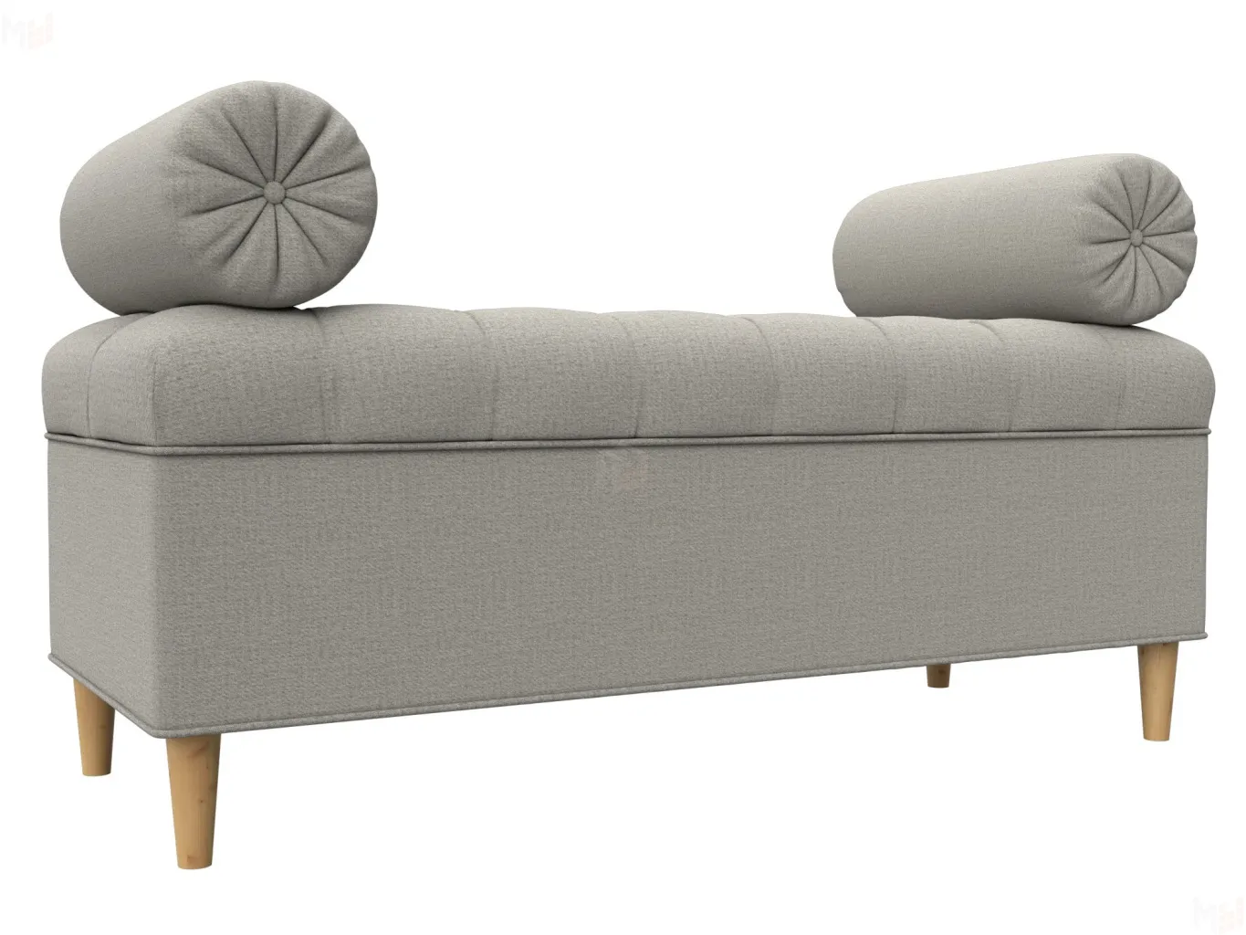 Глория – удлиненная банкетка без спинки, дополненная двумя боковыми пуфиками. Модель функциональна, подходит для размещения в спальне, гостиной и даже коридоре. Изделие можно приставить к кровати, либо поставить возле стенки в гардеробной.