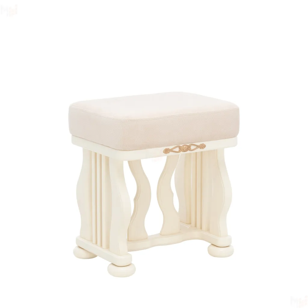 Мягкая банкетка с изогнутыми опорами сложной формы. Выполнена из массива дерева. Сиденье обтянуто мебельной тканью высокого качества. Опоры банкетки придают ей большую устойчивость. Отличное дополнение к туалетному столику «Джульетта», а также отличный отдельный элемент мебели в любом помещении.