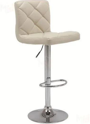 Удобный барный стул в стильном дизайне, с регулируемым по высоте сиденьем. Стул имеет хромированную опору с подножкой, а также сиденье с комфортной спинкой в обивке из экокожи бежевого цвета. Декорирован объемными ромбами.