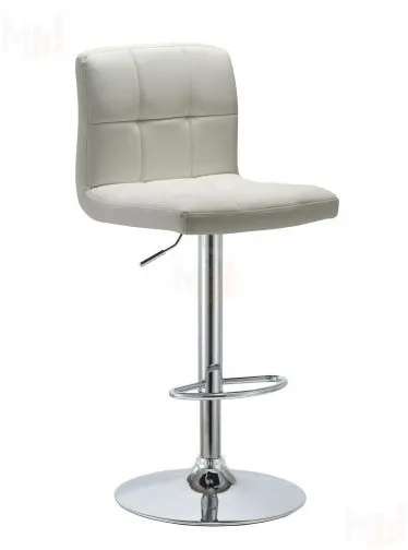Стильный и изящный барный стул на опоре из хромированного металла с подножкой. Прекрасно впишется в интерьер, добавив элегантности. Сиденье, декорированное прострочкой, обтянуто экокожей белого цвета. Стул регулируется по высоте.