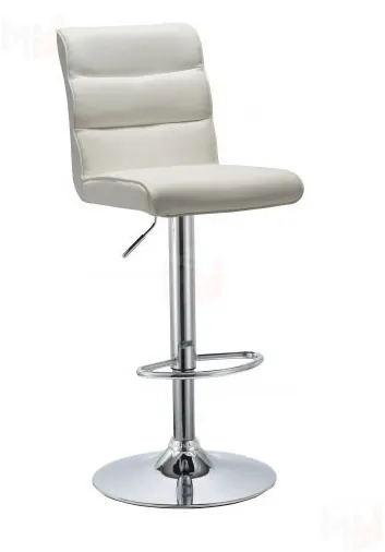 Стильный барный стул на опоре из хромированного металла с подножкой. Украсит интерьер бара или гостиной Вашего дома. Комфортная спинка и мягкое сиденье обтянуты экокожей белого цвета. Стул регулируется по высоте.
