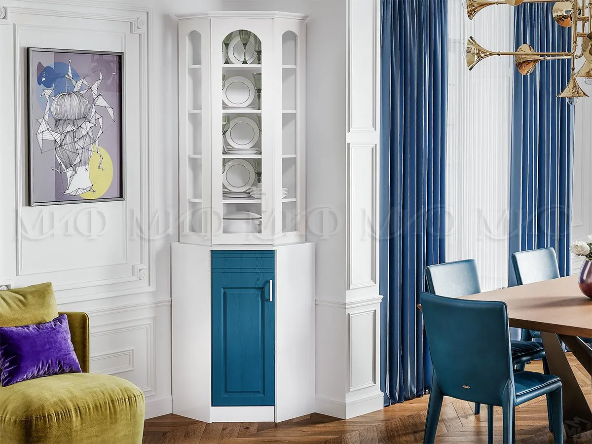 Буфет "Констанция" идеально впишется в кухонный интерьер, выполненный в классическом или дворцовом стиле. Угловая модель имеет изысканный дизайн и стильное цветовое оформление. Ее легкость и изящество подчеркивают элегантные фасады, изготовленные из прозрачного стекла. Буфет оснащен множеством удобных полочек. Здесь найдется место для тарелок, чашек, кофейников, молочников, заварочных чайников и другой посуды. Буфет оформлен декоративным карнизом.