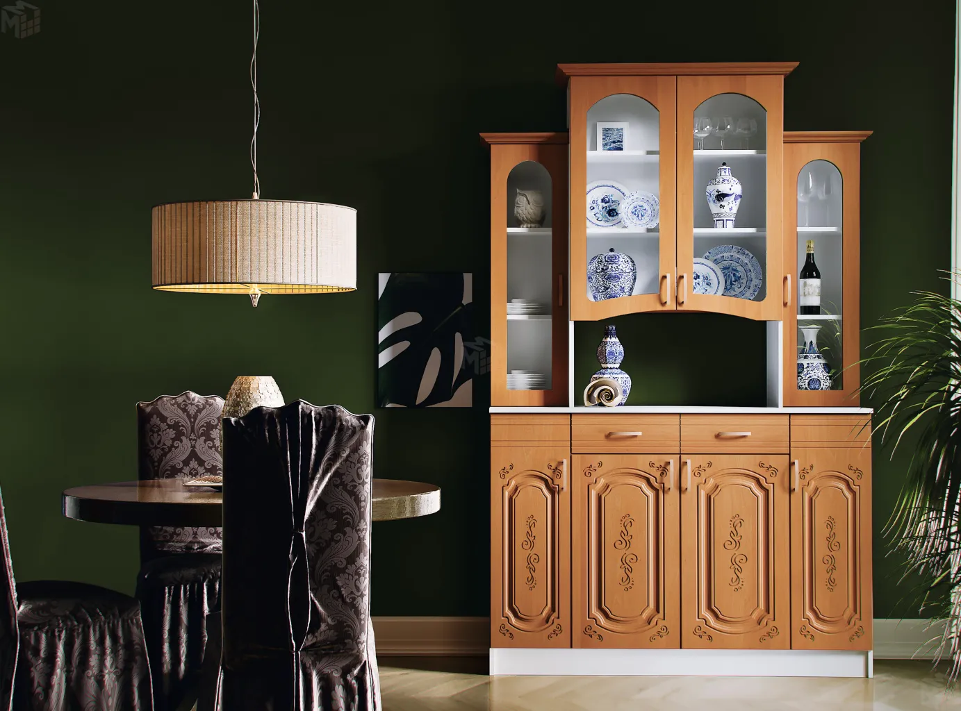 Буфет Лиза-2 имеет классическое оформление, благодаря чему прекрасно впишется в любое интерьерное решение. Он состоит из нескольких вместительных отделений, позволяющих компактно разместить тарелки, сахарницы, чайники и многие другие предметы, которые могут пригодиться на кухне. Для дополнительного удобства в буфете предусмотрена широкая столешница, она может играть роль подставки для сервиза или использоваться в качестве рабочей поверхности. Буфет оформлен декоративным карнизом.