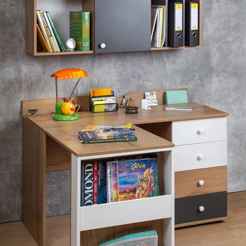 Ее можно установить с любой стороны письменного стола в зависимости от планировки детской комнаты. Дополнительный двухъярусный карман – место для хранения книг, рабочих тетрадей и папок. Ширину стола можно увеличить или уменьшить на 150 мм с шагом в 1 мм. -