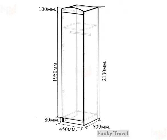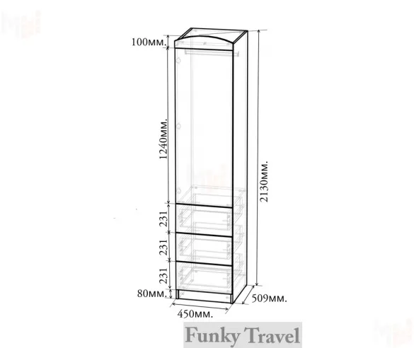 Узкий шкаф с ящиками 2130х509х450 мм.