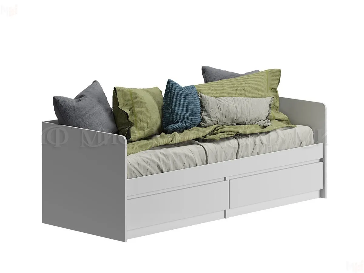 Кровать выполнена из ЛДСП белый, фасады белый глянец 16 мм.