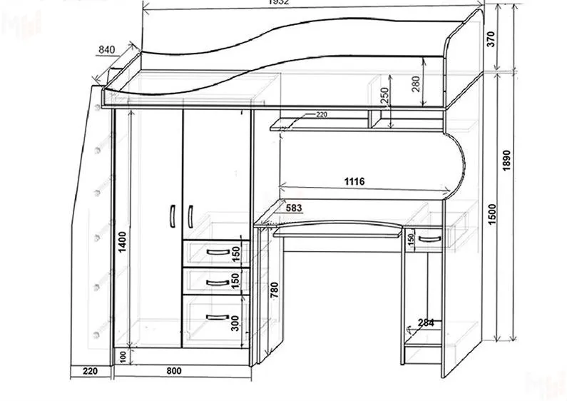 Высота 1890 мм. Спальное место 1900х800 мм. -