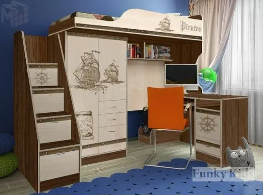 Детская мебель Пираты: кровать-чердак ПР-4/1 + лестница ПР-13/8 + стол КП-13/1