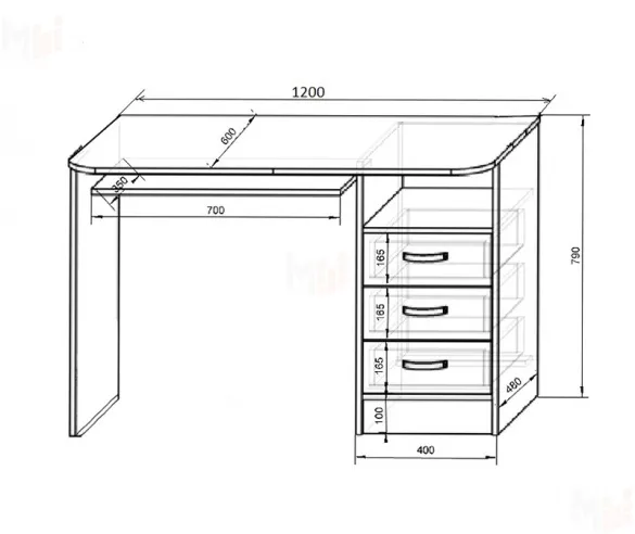- Стол письменный ПР-13/1 для учебы. Состоит из тумбы (внутри три ящика) и выкатного элемента под столешницей. Стол универсальный-тумба может быть как с одной стороны, так с другой.