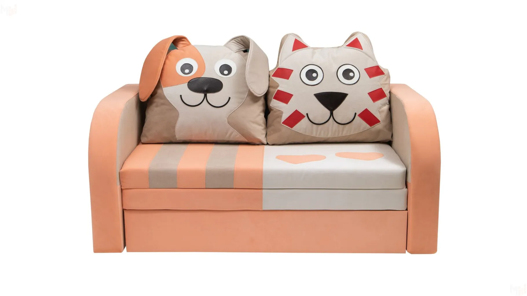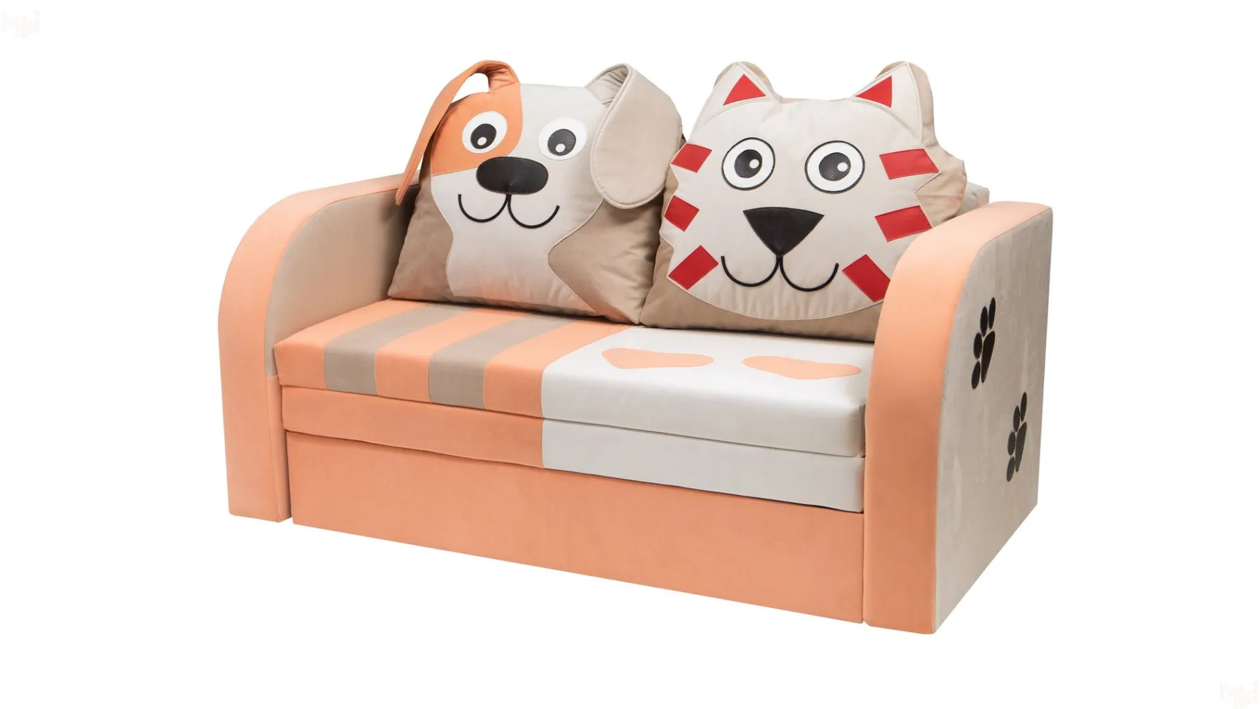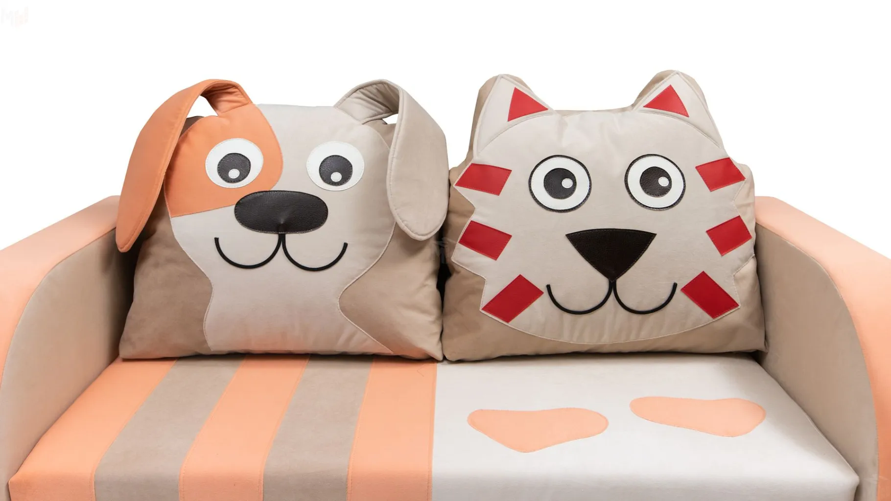 Диван Кот и пес – интересное и нестандартное решение для детской комнаты, ведь на нем можно не только спать и отдыхать, но и использовать для игр, не раз и не два отправляясь в увлекательное плавание по воображаемым мирам детских фантазий. Внутренняя конструкция дивана способна выдерживать повышенные нагрузки.