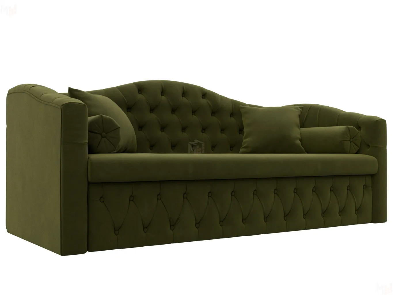 «Мечта» – современный прямой диван с механизмом раскладки «дельфин» станет прекрасным приобретением и дополнением интерьера жилой комнаты, где он не займет много места. Спинка модели и царга украшены элегантной каретной стяжкой, мягкие подлокотники имеют изогнутый и элегантный вид. Две небольшие приспинные подушки обеспечат удобство и комфорт. Дизайн дивана дополнен двумя декоративными подушками в форме валика. Конструкция дивана «Мечта» надежна, функциональна, легко трансформируется в полутороспальную кровать.