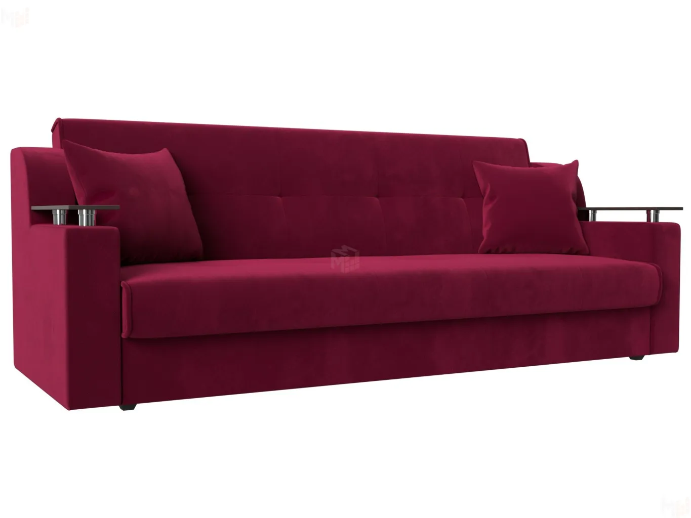 Сенатор – мягкий прямой диван с эргономичной спинкой и мини-столиками по бокам. Он устойчиво стоит на 4 пластиковых ножках, идеально гармонирующих с общим дизайном. Спинка прямая, без съемных подушек, подлокотники деревянные, выполняют роль столиков. Классический механизм «книжка» позволяет быстро трансформировать его в удобную двуспальную кровать. -