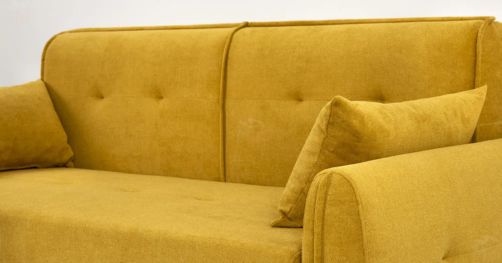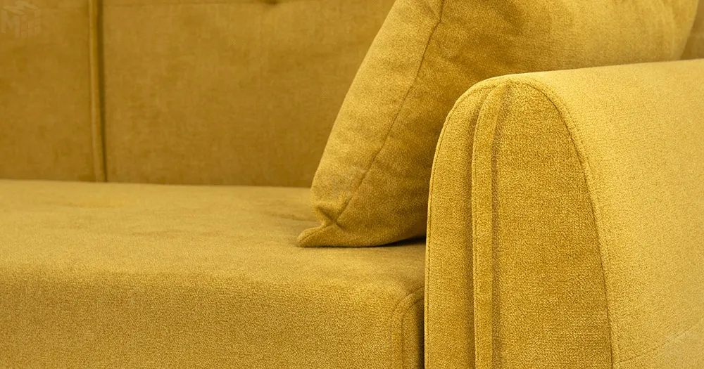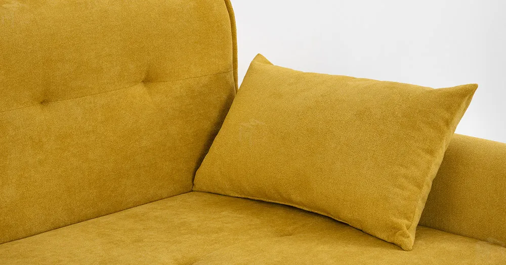 Мягкая спинка с имитацией приспинных подушек. Утяжки на передней и задней стороне спинки, на сиденье и подлокотниках.