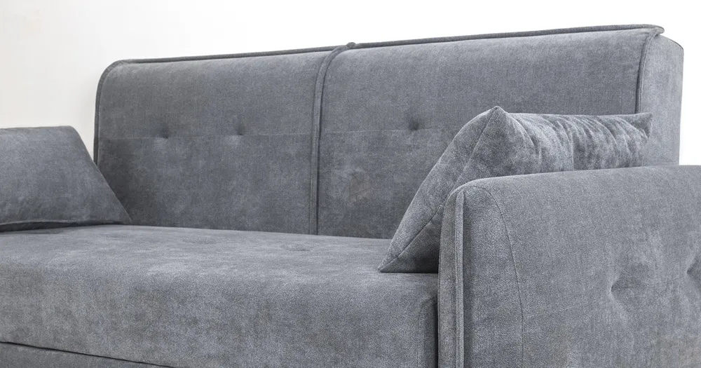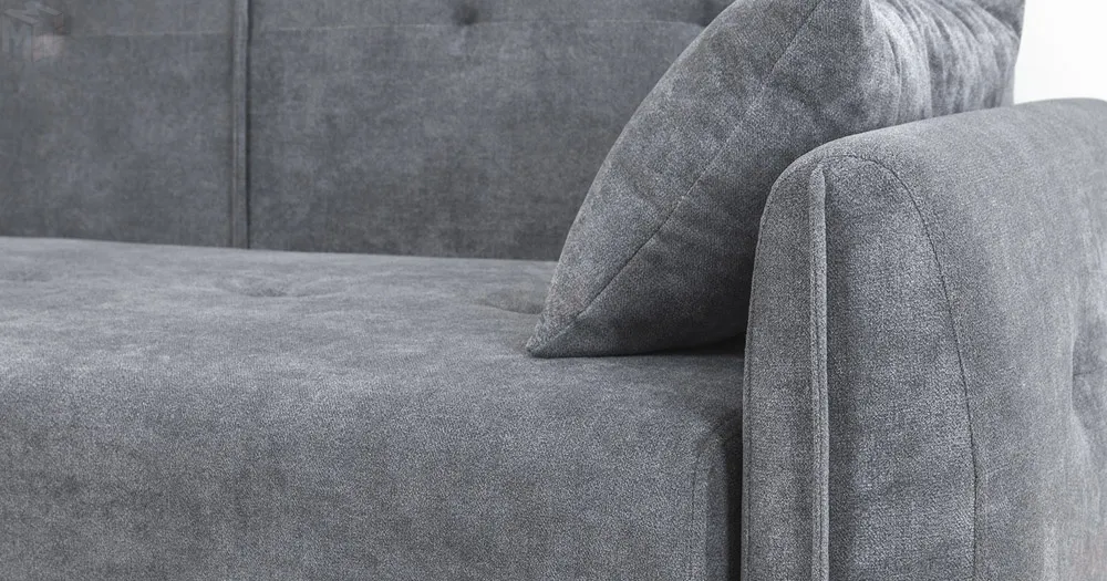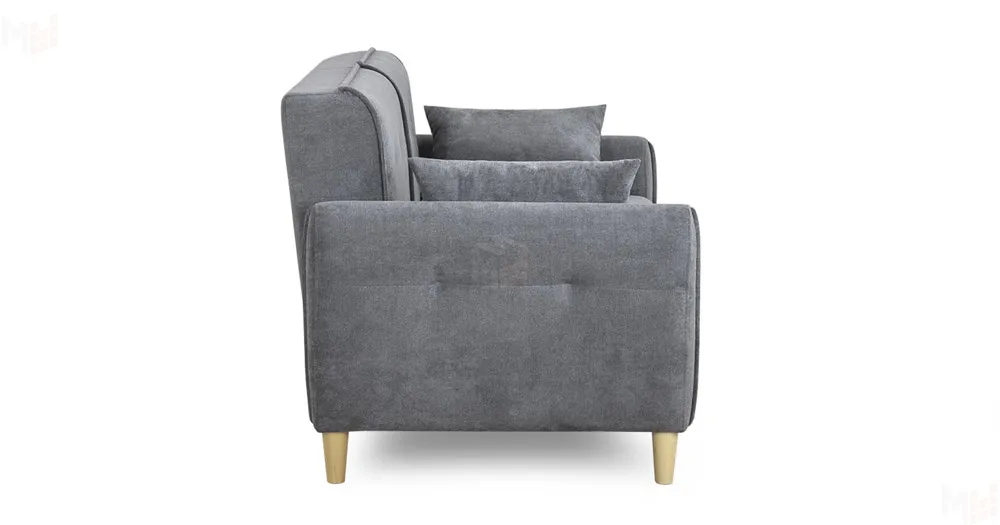 Мягкая спинка с имитацией приспинных подушек. Утяжки на передней и задней стороне спинки, на сиденье и подлокотниках.