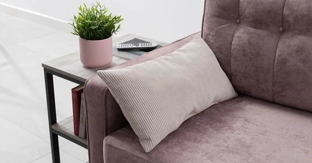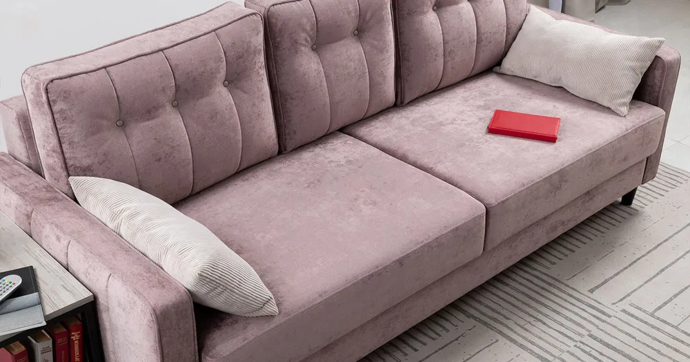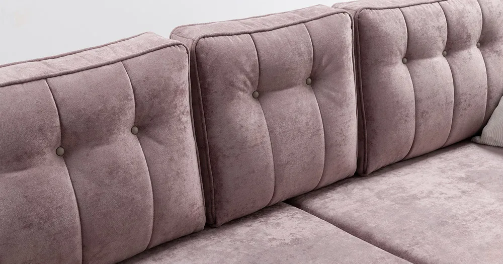 Подушки имеют трапециевидную форму, с утолщением к низу для комфорта посадки. Кант по всему периметру подушек, декоративные утяжки металлическими пуговицами, вертикальная стежка.