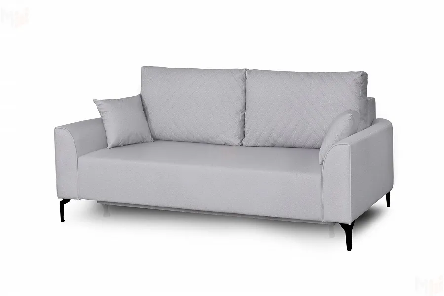 Плавные линии подлокотников позволяют удобно расположиться во время отдыха. Диван стоит на высоких металлических опорах, что позволяет использовать робот-пылесос в процессе уборки. Удобный и долговечный механизм трансформации «Тик-так» обеспечивает легкое раскладывание дивана.