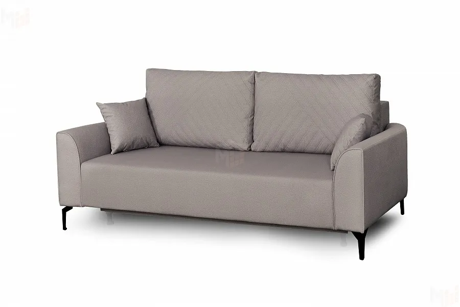 Плавные линии подлокотников позволяют удобно расположиться во время отдыха. Диван стоит на высоких металлических опорах, что позволяет использовать робот-пылесос в процессе уборки. Удобный и долговечный механизм трансформации «Тик-так» обеспечивает легкое раскладывание дивана.