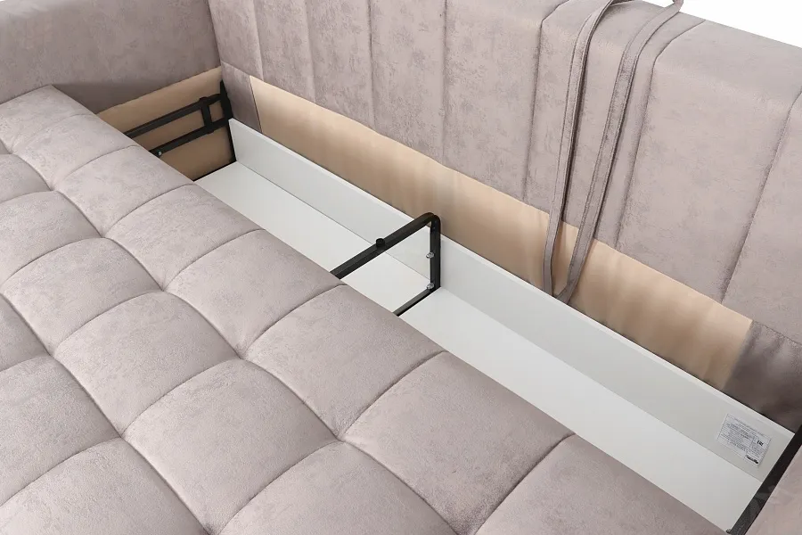 Имеет бельевой ящик. Декоративные утяжки, декоративное шитьё. -