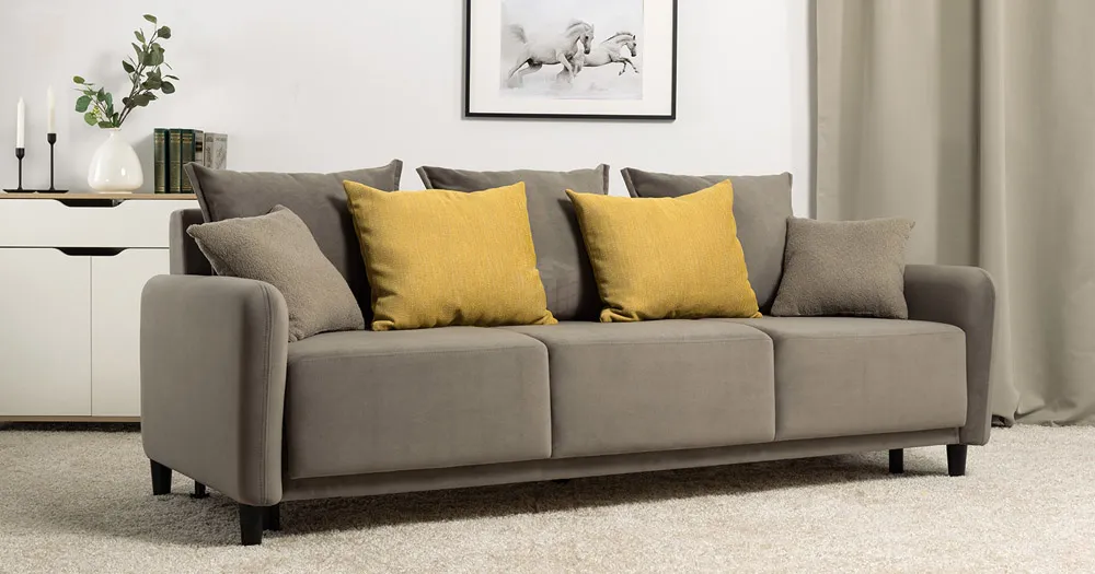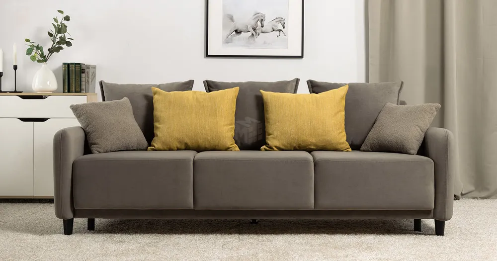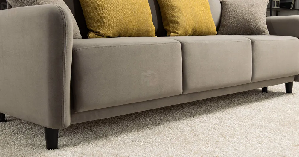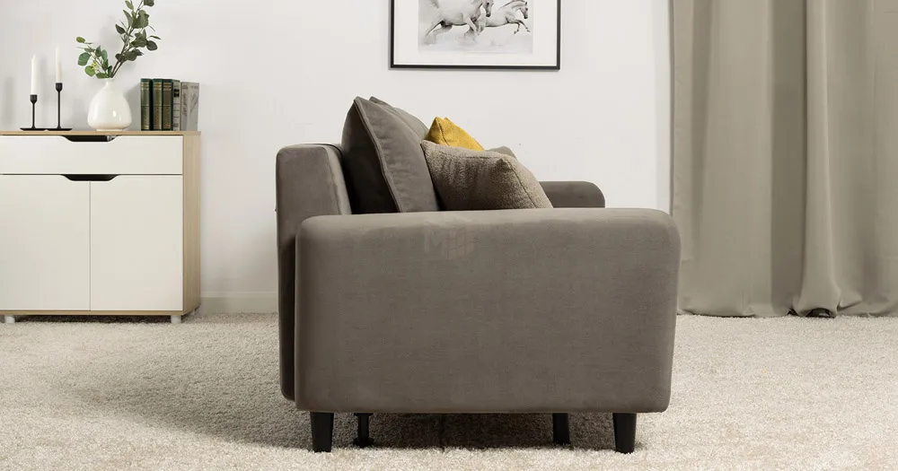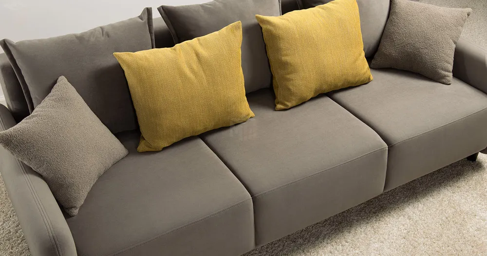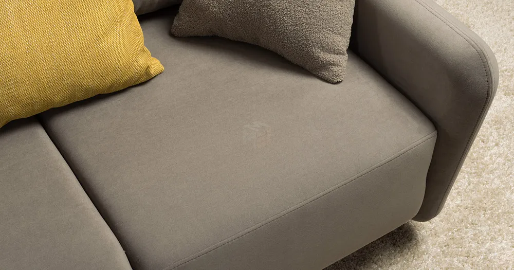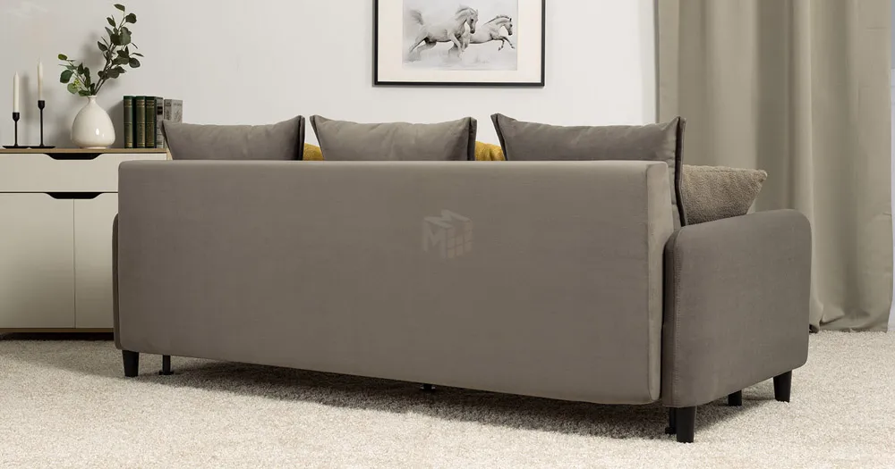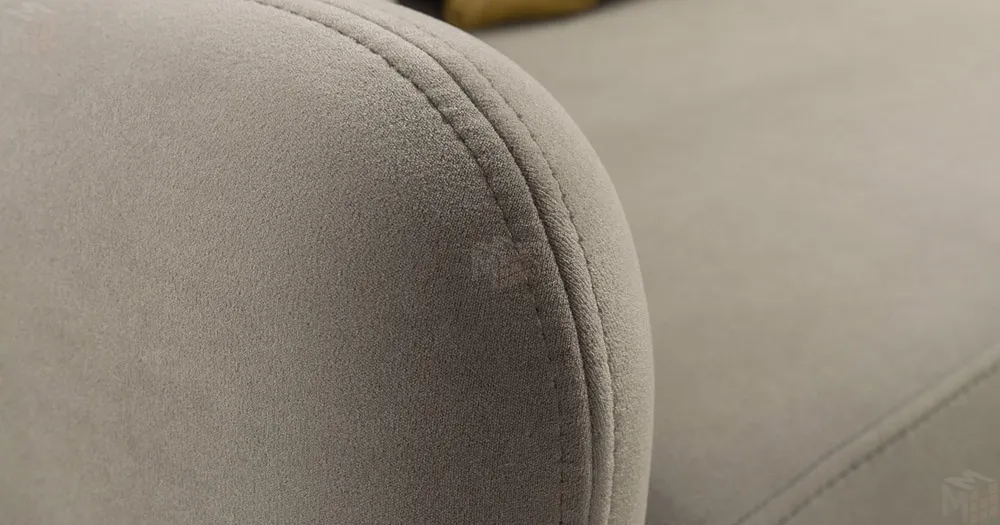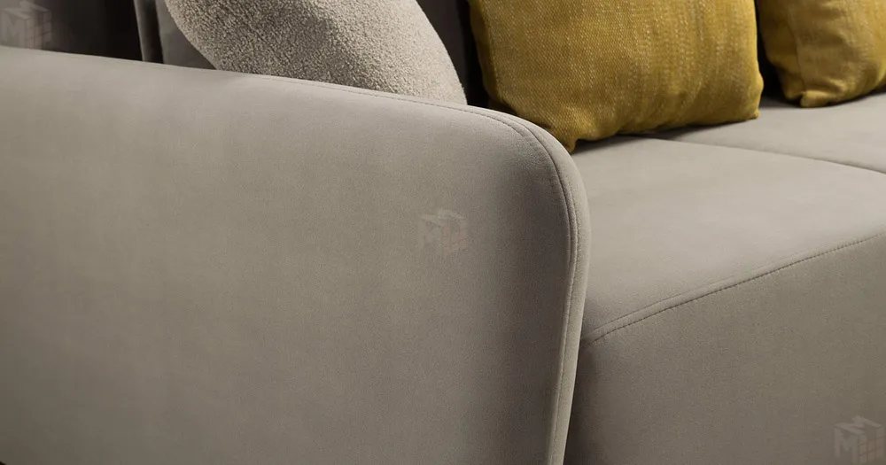 В комплекте 2 двусторонние декоративные подушки и 2 декоративные думки. Задняя спинка в ткани основы. Декоративные отделочные строчки по боковинам и сиденью