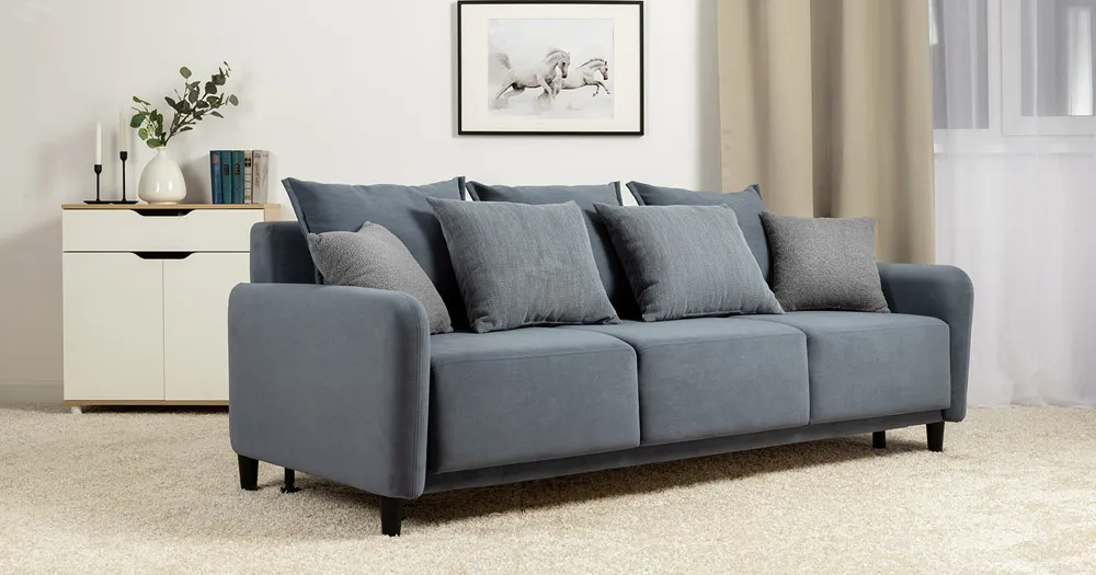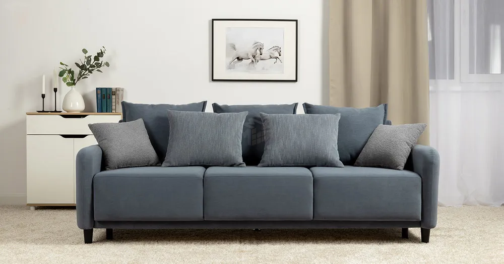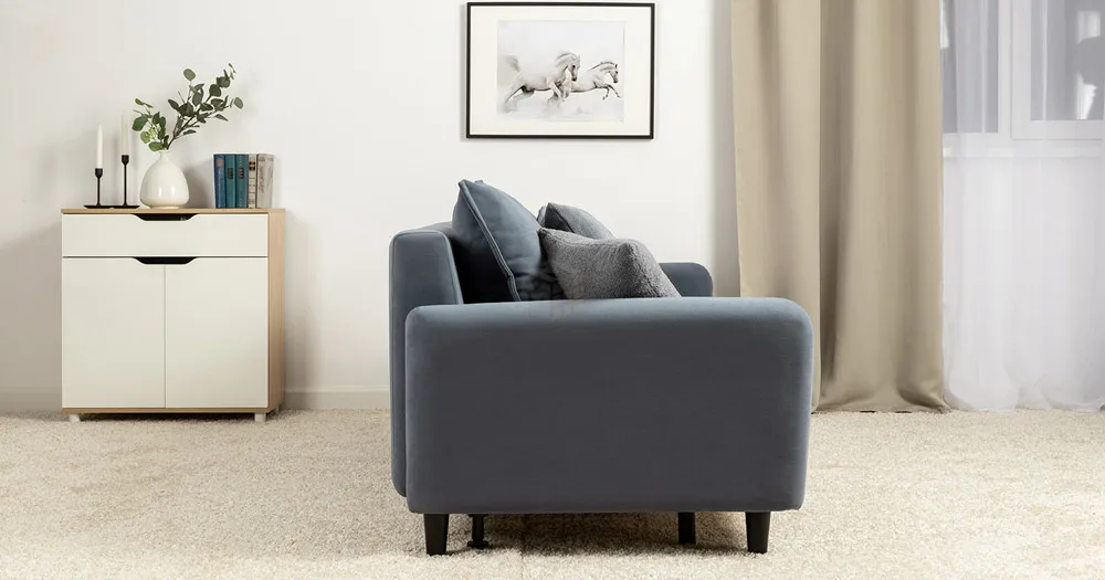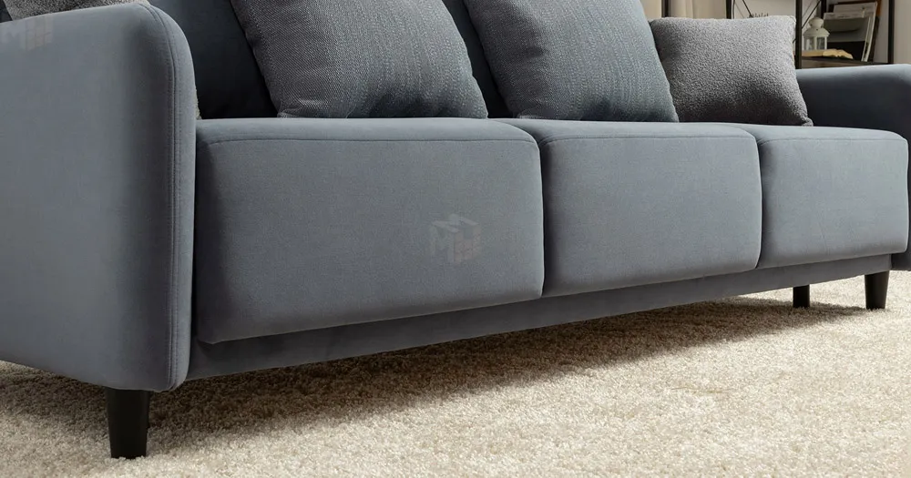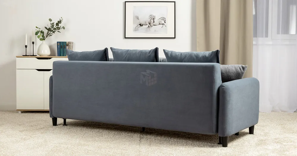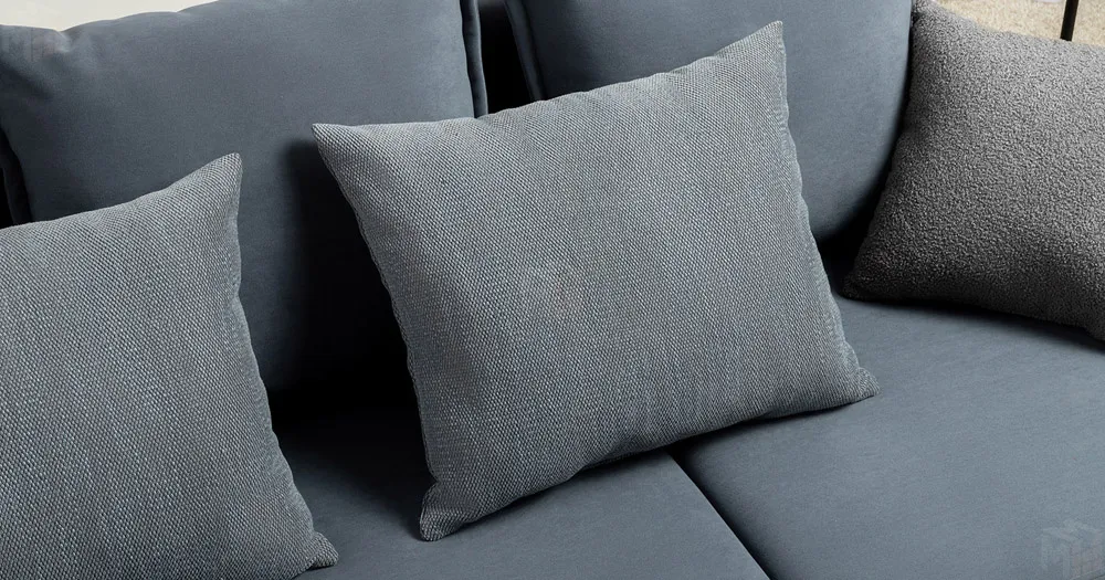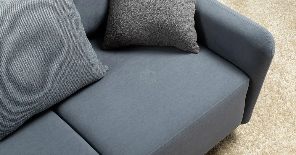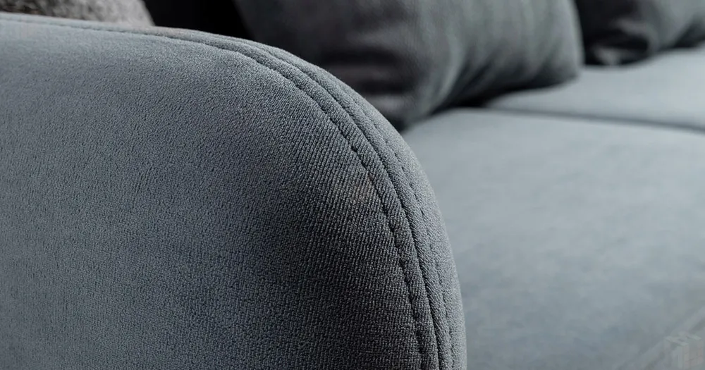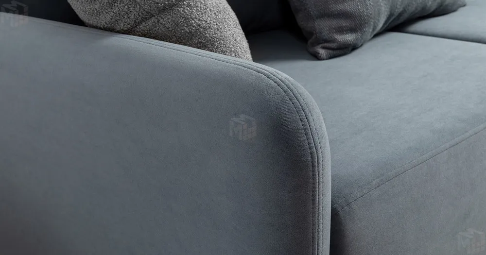 В комплекте 2 двусторонние декоративные подушки и 2 декоративные думки. Задняя спинка в ткани основы. Декоративные отделочные строчки по боковинам и сиденью