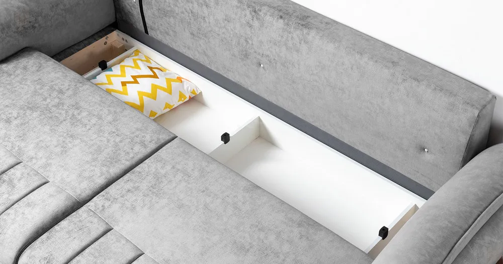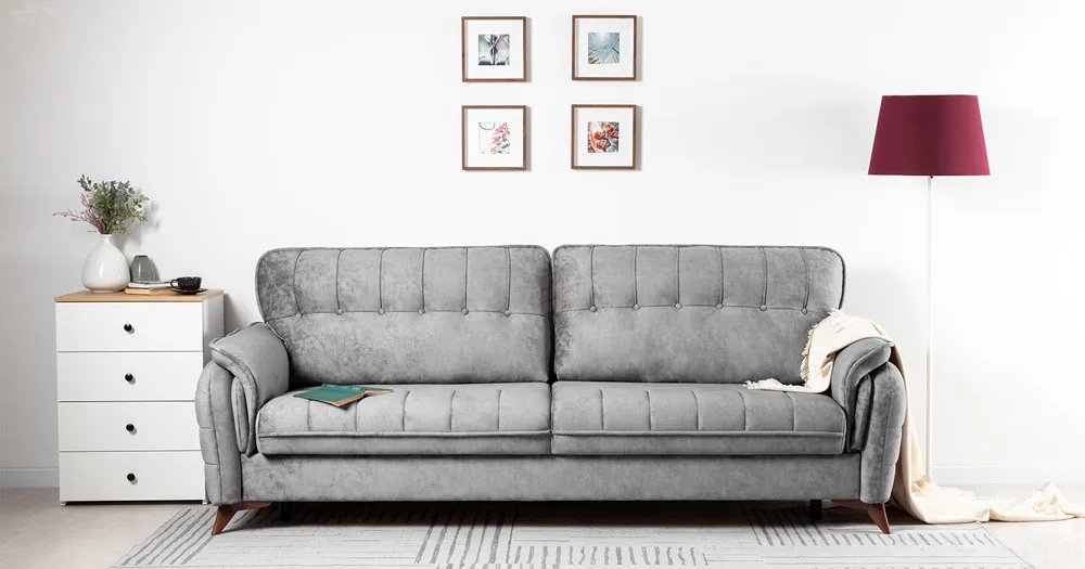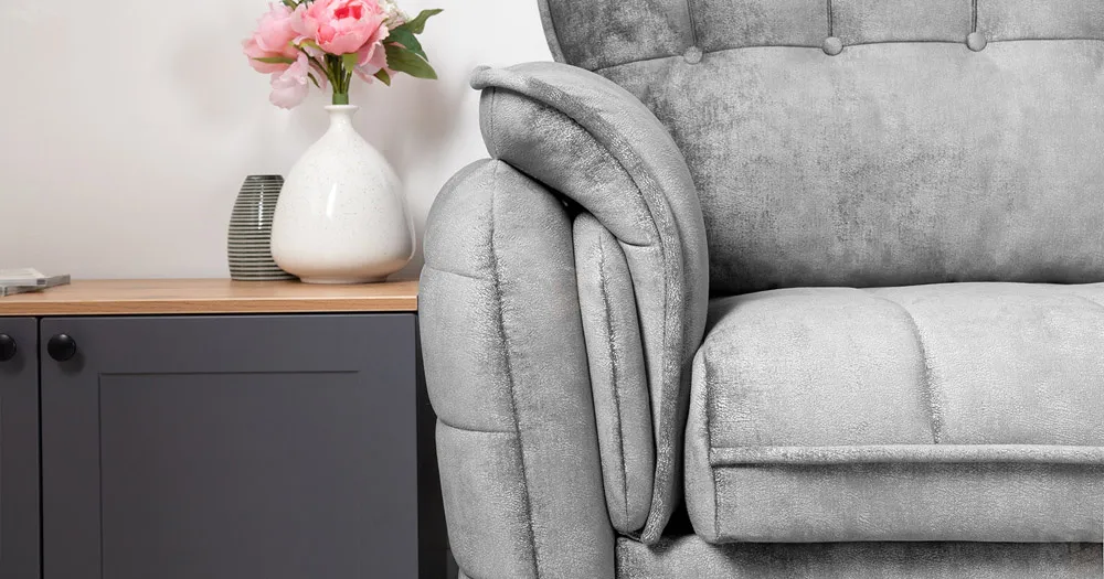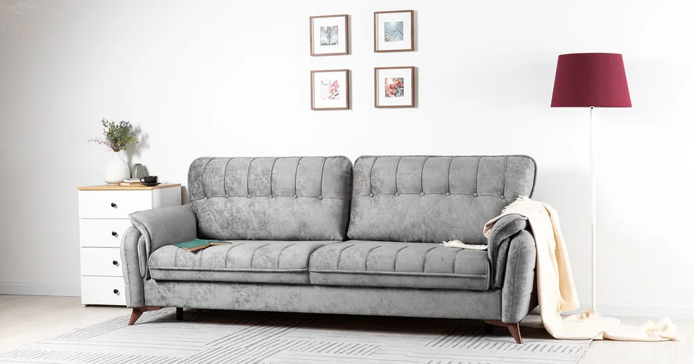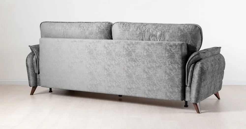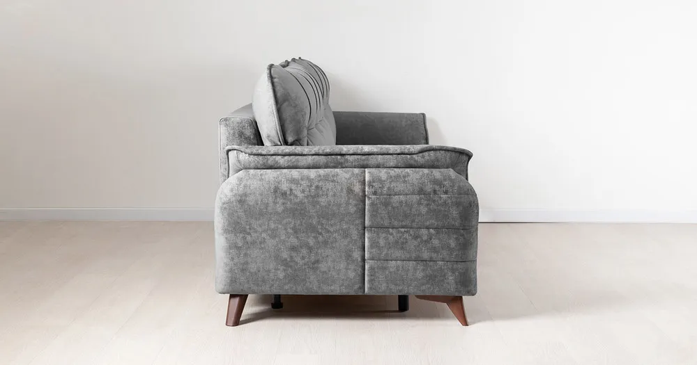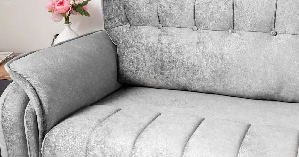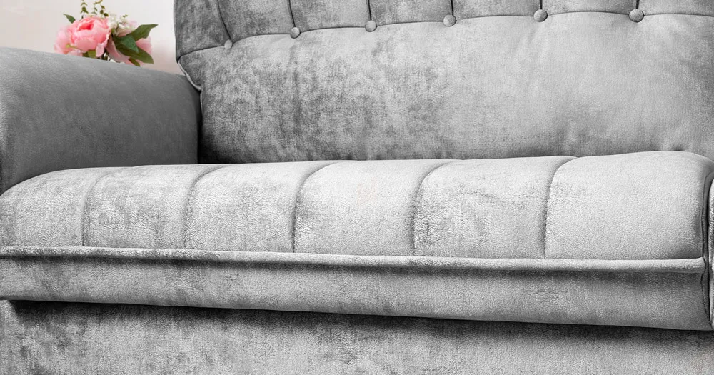 Декоративные канты на подушках дивана, подлокотниках и сиденье. Стежка на передней части сиденья и внешней части подлокотника. Защипы на верхней части подушки. Втяжки с пуговицами на приспинных подушках.