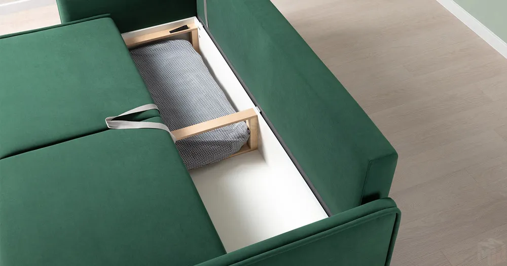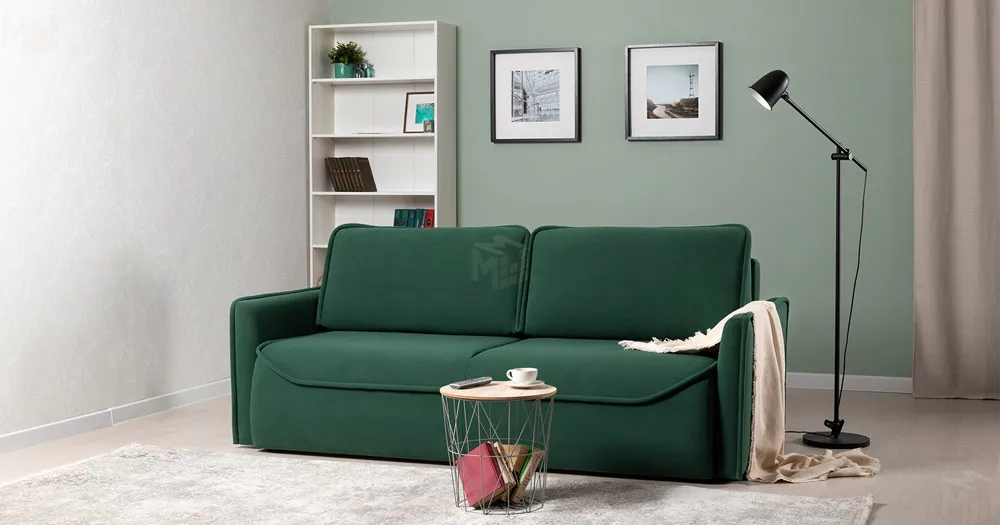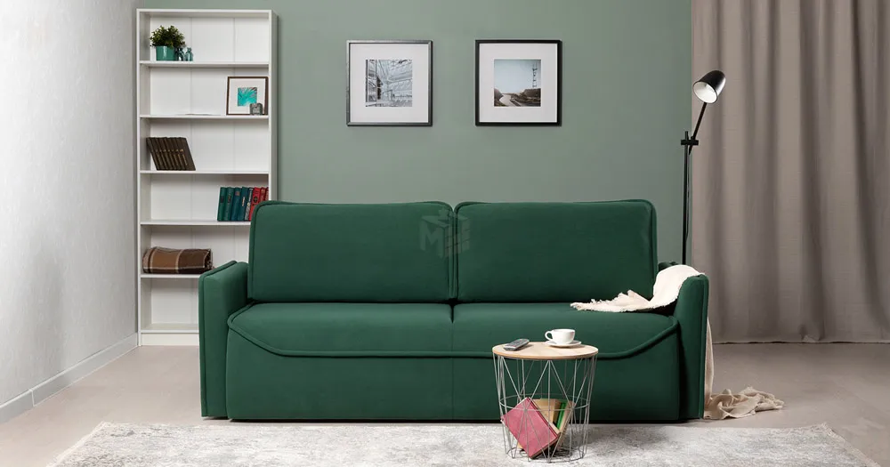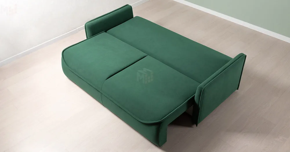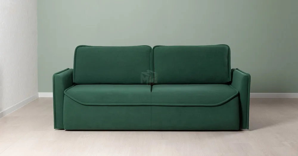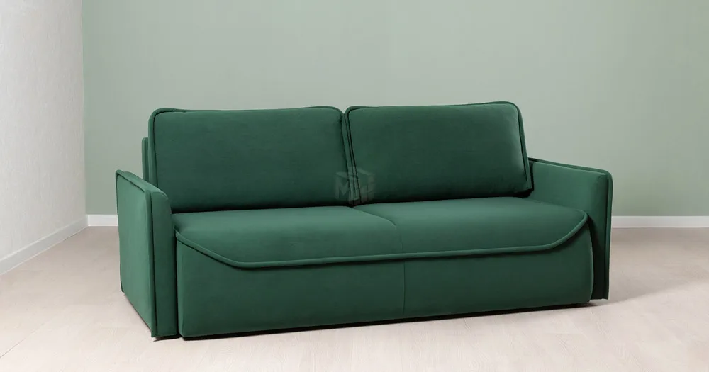 Кант на подушках заведен назад, с лицевой стороны по верху переходит на тыльную сторону. Выкатной блок целиковый, с лицевой стороны разделяется мягким выраженным кантом, переменного уровня примерно 240 мм от низа сидения. Подлокотники утонченные с кантом смещенным наружу. Кант по всему периметру подлокотника..