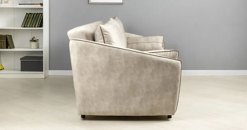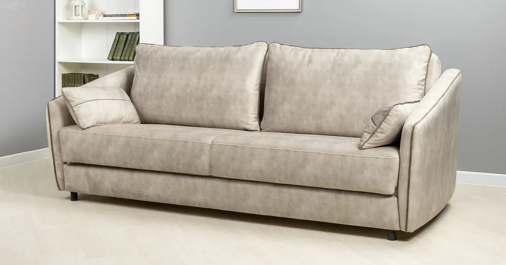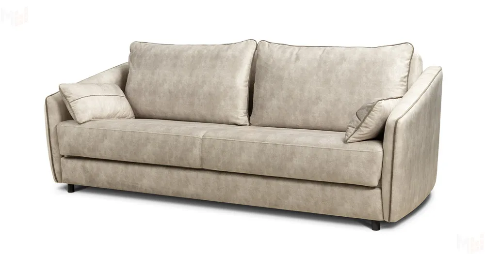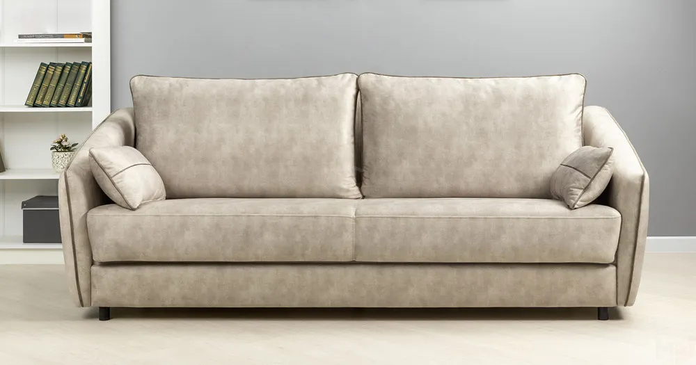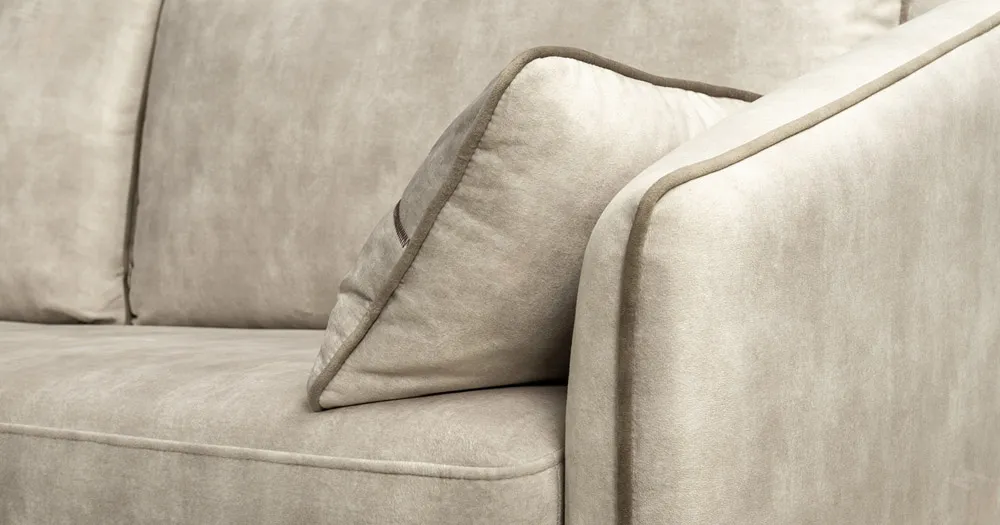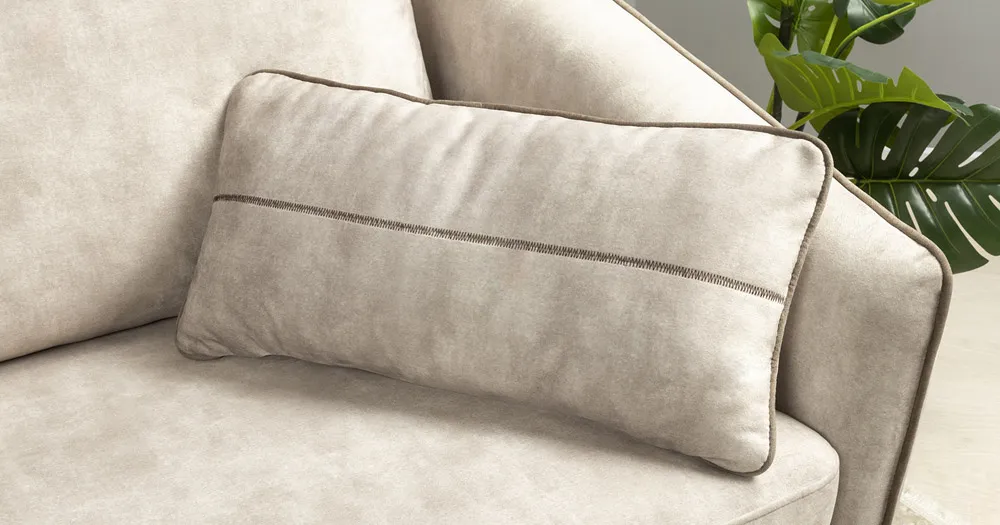 Подлокотники с выраженным контрастным кантом по внешнему контуру изделия. Декоративные подушки оформлены декоративной отстрочкой «зигзаг».