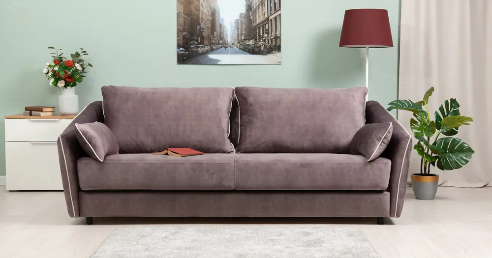 Подлокотники с выраженным контрастным кантом по внешнему контуру изделия. Декоративные подушки оформлены декоративной отстрочкой «зигзаг».