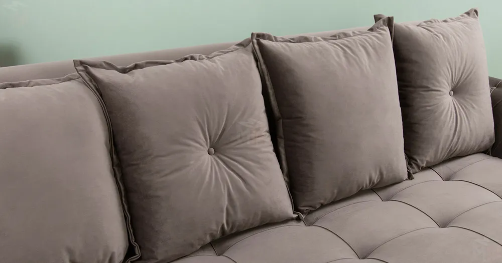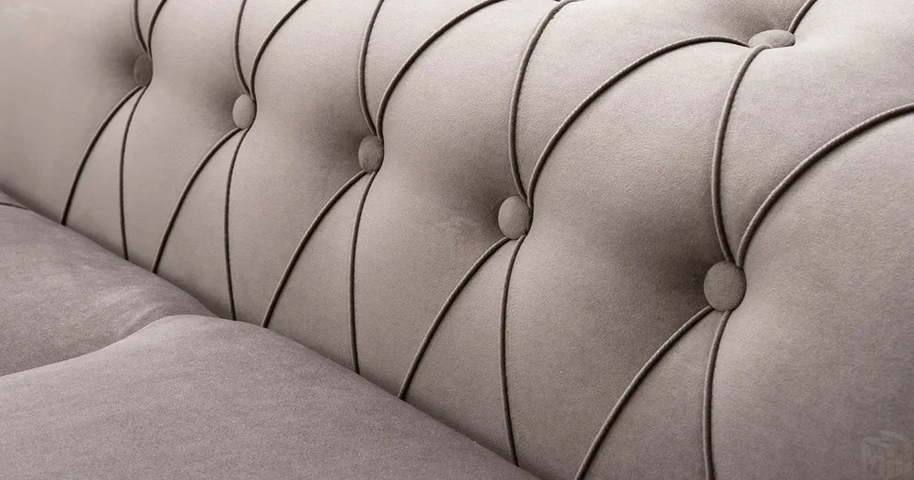 Декоративная отстрочка, защипы и утяжки на сиденье; защипы и утяжки с пуговицами на подлокотниках; утяжки с пуговицами на приспинных подушках