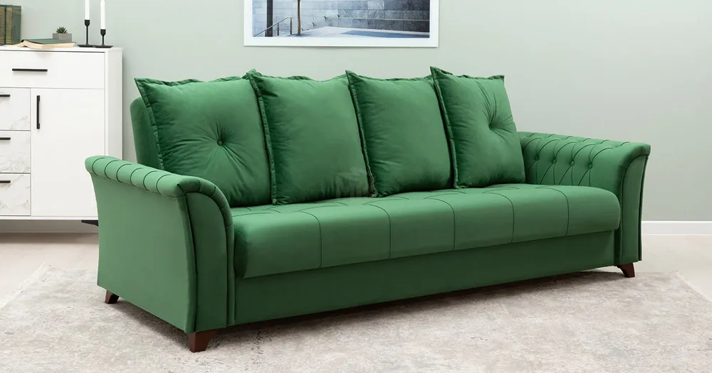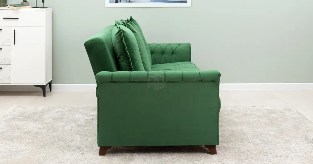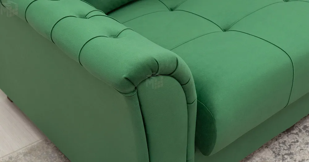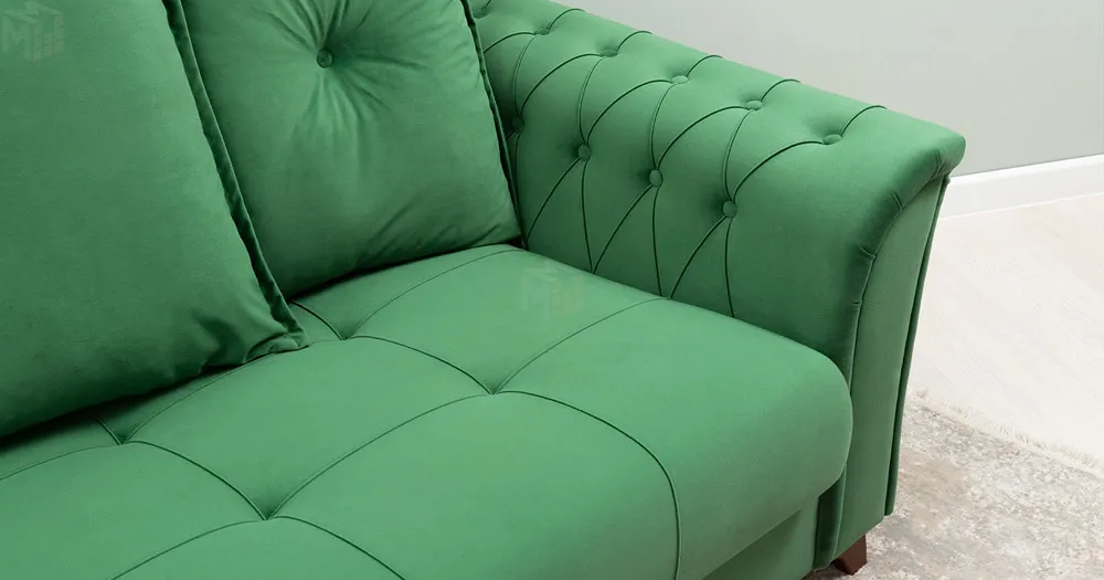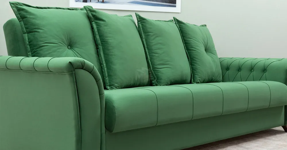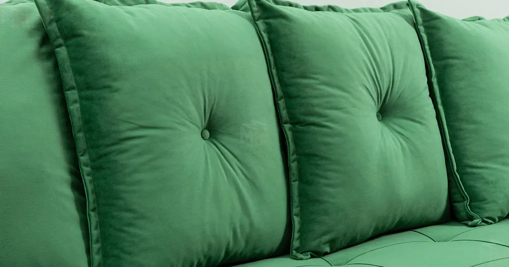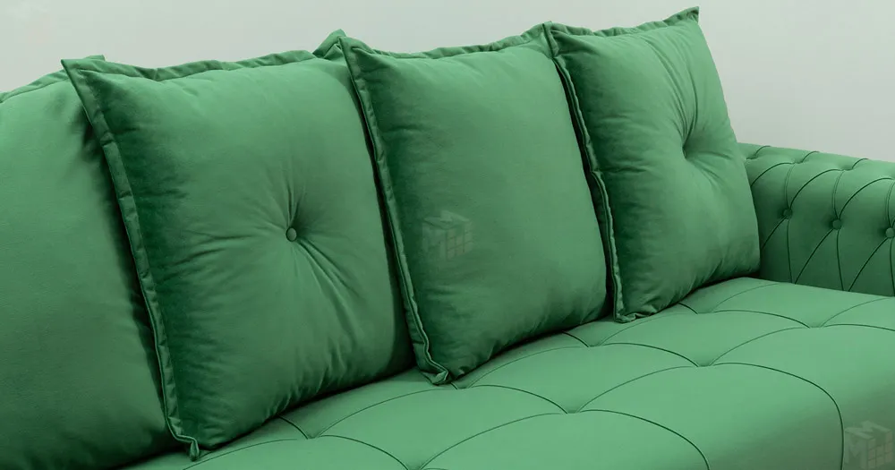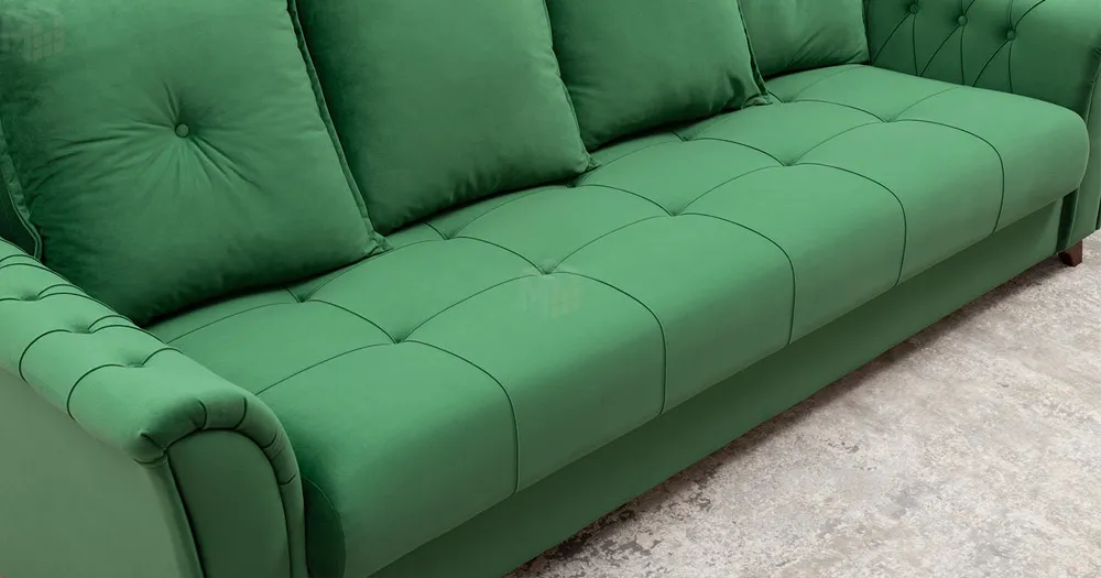Декоративная отстрочка, защипы и утяжки на сиденье; защипы и утяжки с пуговицами на подлокотниках; утяжки с пуговицами на приспинных подушках