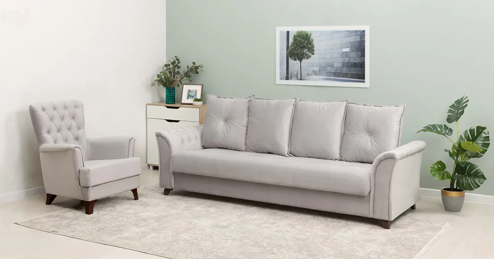 Декоративная отстрочка, защипы и утяжки на сиденье; защипы и утяжки с пуговицами на подлокотниках; утяжки с пуговицами на приспинных подушках