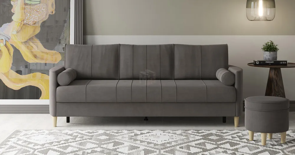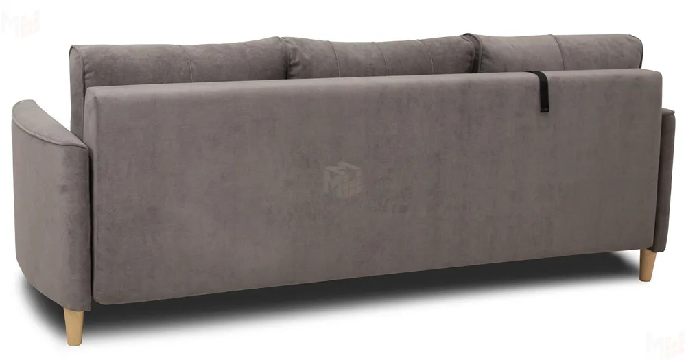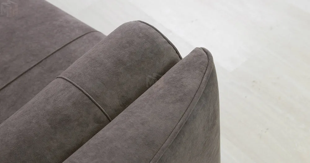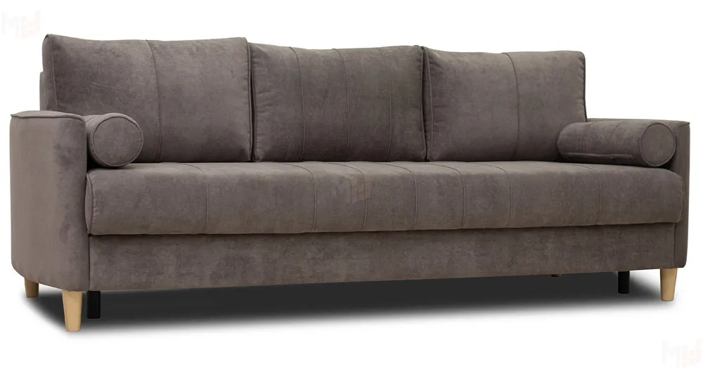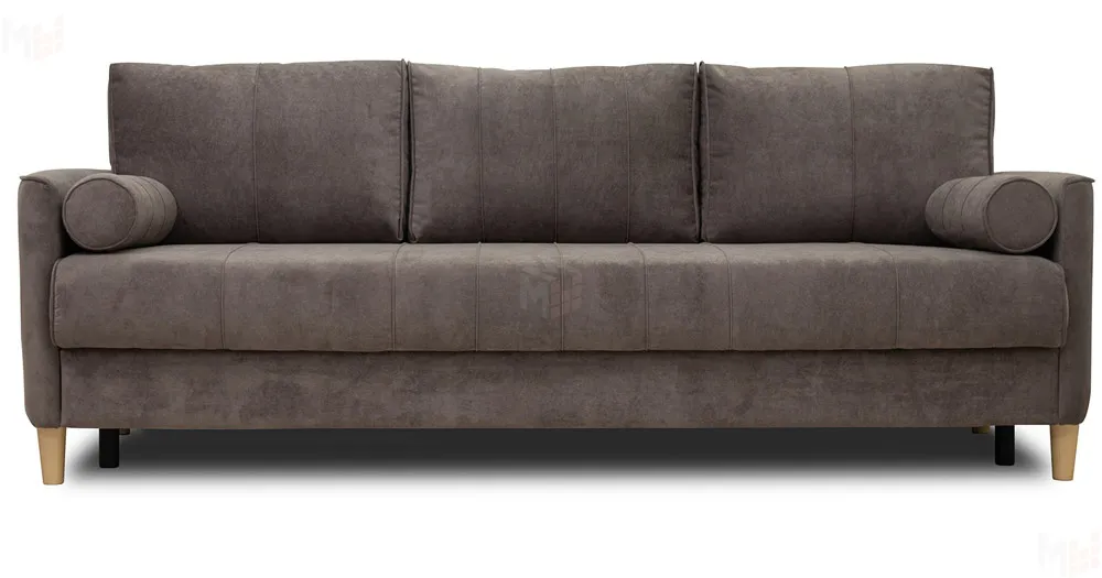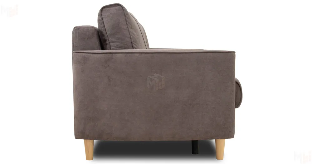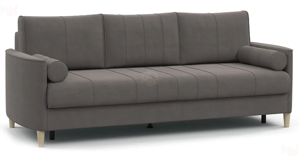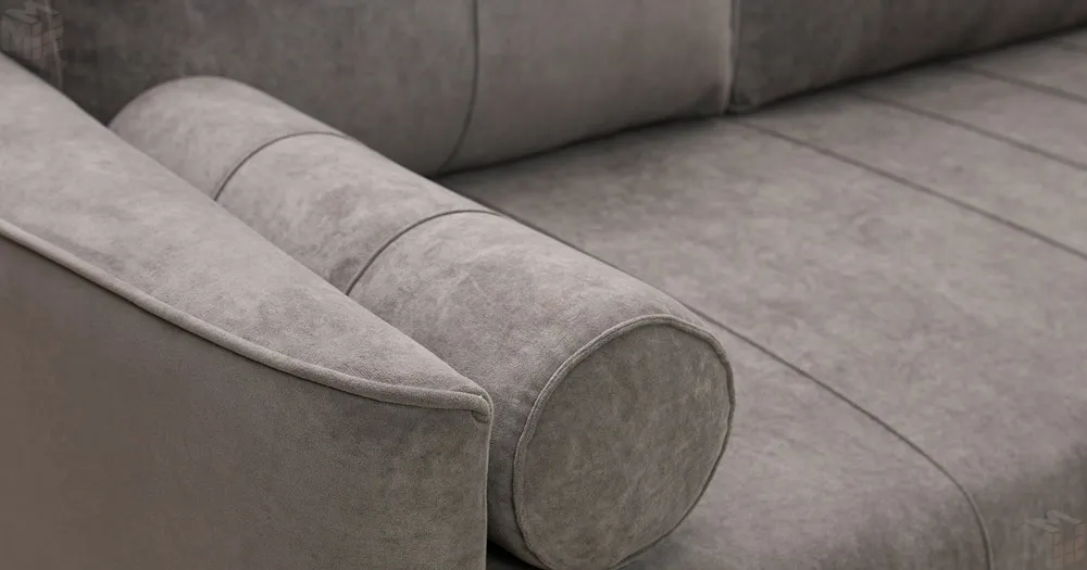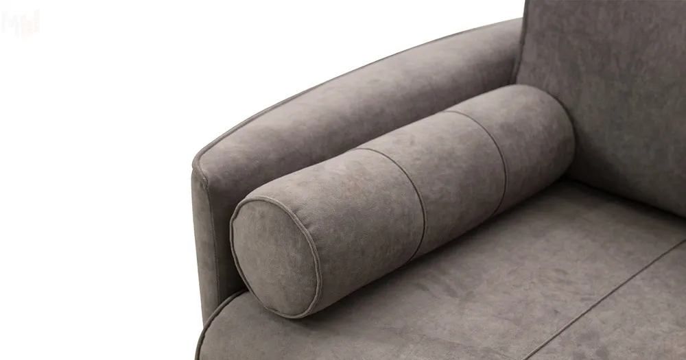 Кант на торцах приспинных подушек, сиденья и подлокотников. Защипы на сиденье и приспинных подушках. Две декоративные подушки-валика с защипами.
