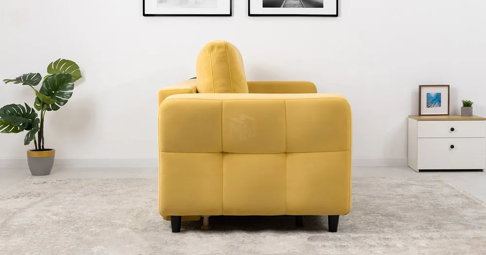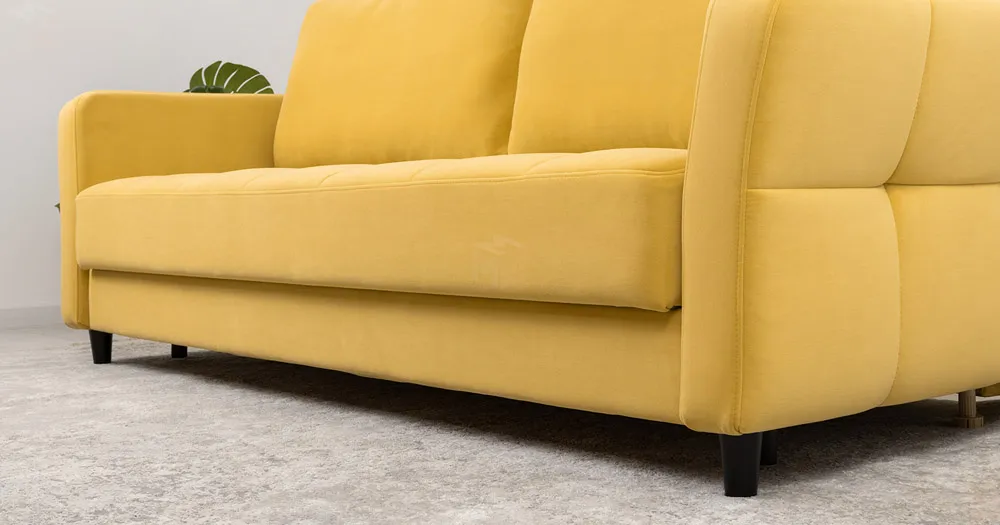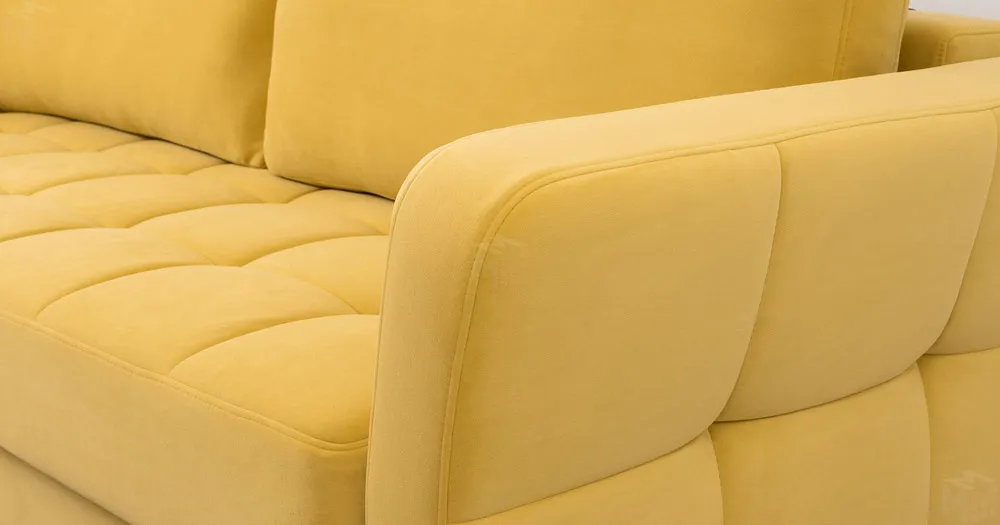 Ровная отстрочка по всему периметру сидения и стежка создающая эффект пышности выделенных форм. Подлокотники прямые с изгибом в наружные стороны, с выраженной стежкой по лицевой стороне. Стежка на посадочной части дивана.