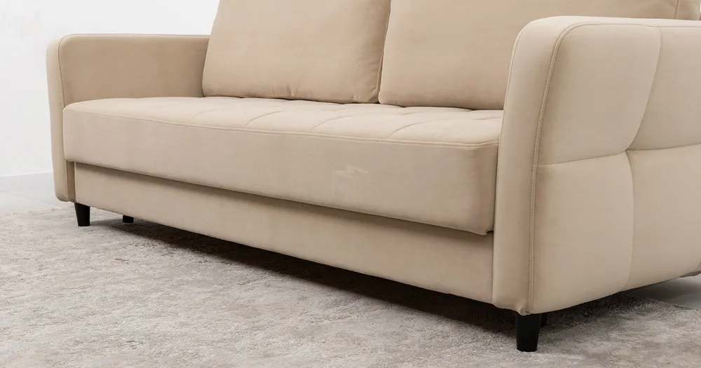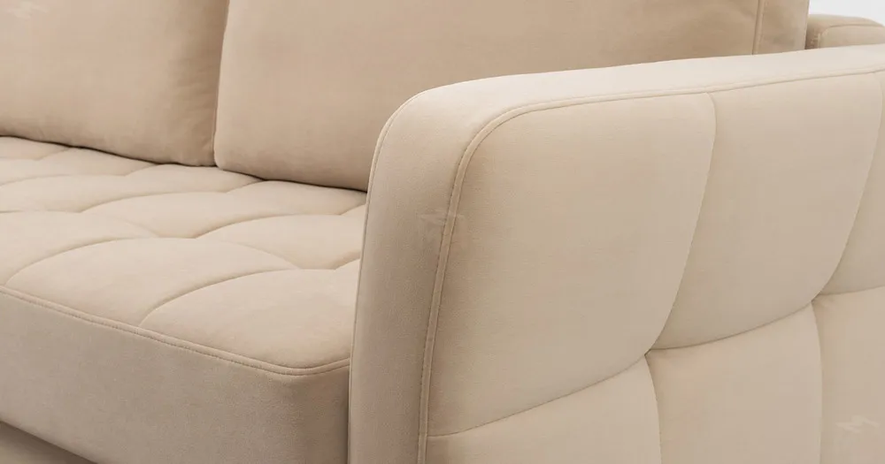 Ровная отстрочка по всему периметру сидения и стежка создающая эффект пышности выделенных форм. Подлокотники прямые с изгибом в наружные стороны, с выраженной стежкой по лицевой стороне. Стежка на посадочной части дивана.