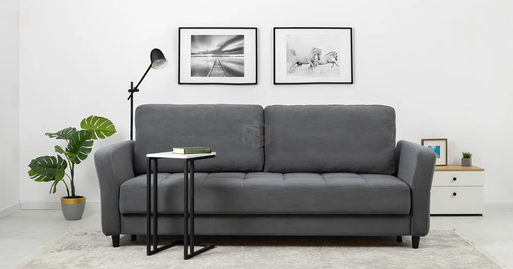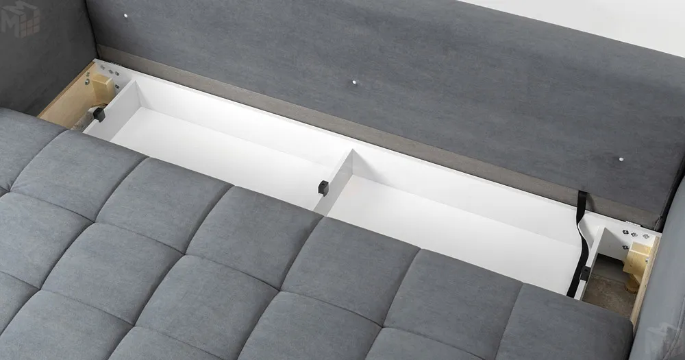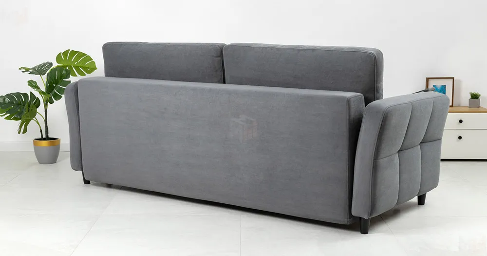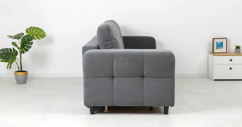 Ровная отстрочка по всему периметру сидения и стежка создающая эффект пышности выделенных форм. Подлокотники прямые с изгибом в наружные стороны, с выраженной стежкой по лицевой стороне. Стежка на посадочной части дивана.
