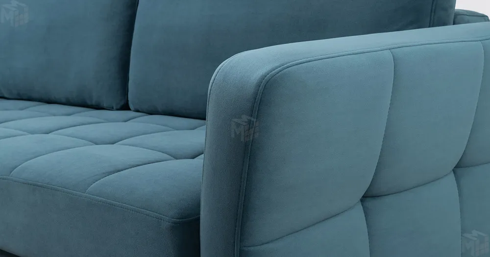 Ровная отстрочка по всему периметру сидения и стежка создающая эффект пышности выделенных форм. Подлокотники прямые с изгибом в наружные стороны, с выраженной стежкой по лицевой стороне. Стежка на посадочной части дивана.