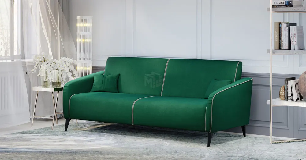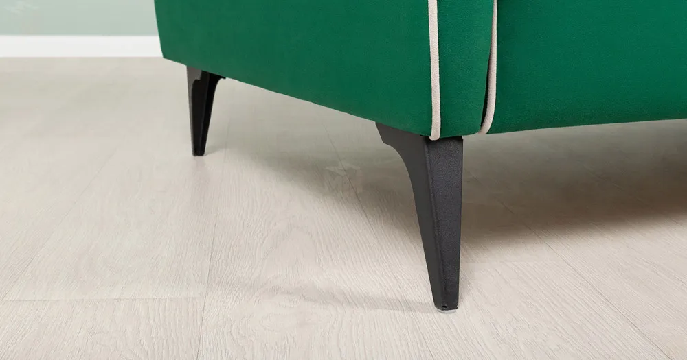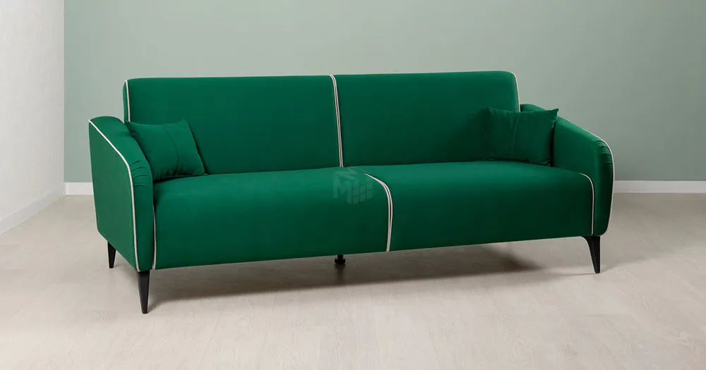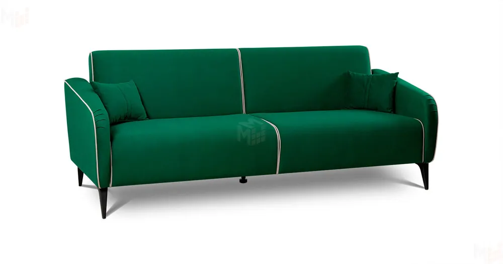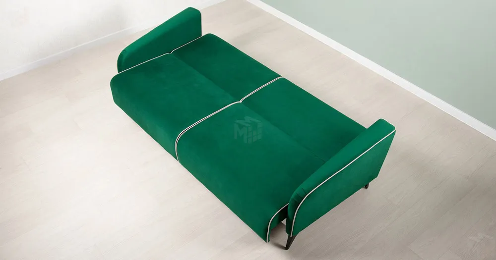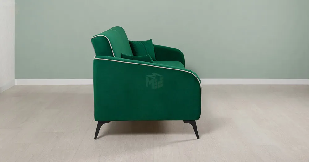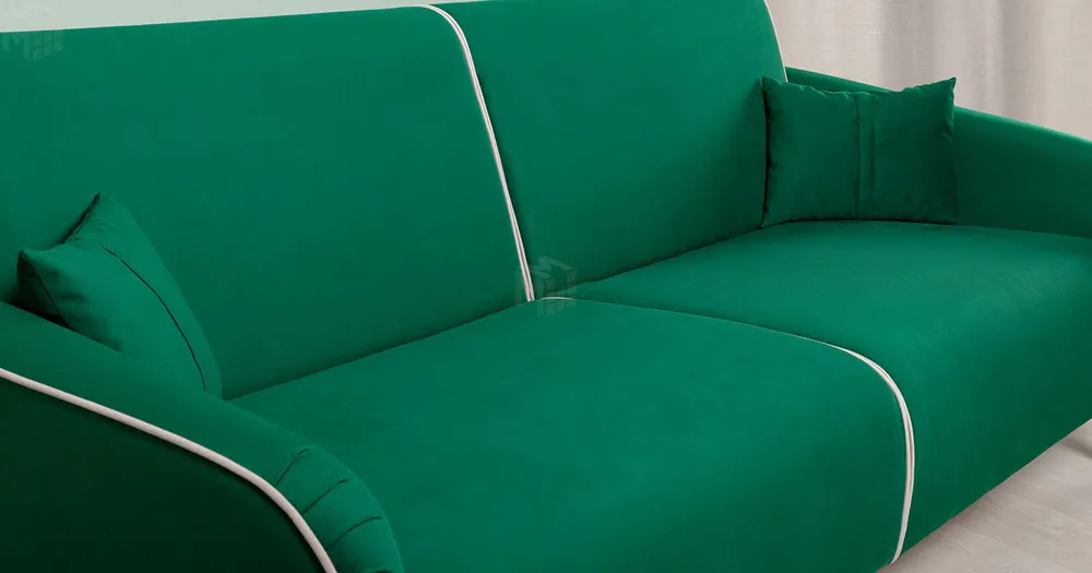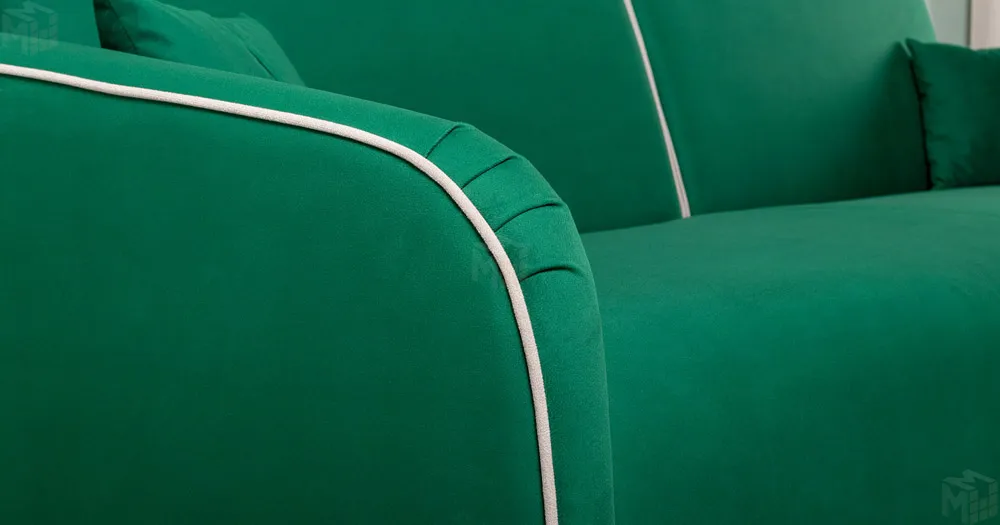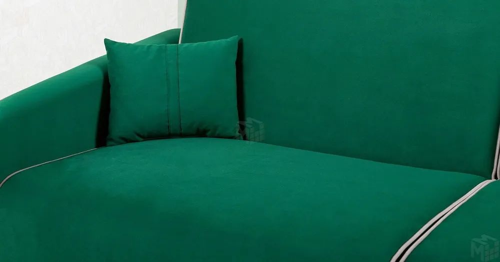 Спинка и сиденье разделяются пополам двойным кантом по центру и одинарным по краям сидения, для придания одной единой формы. Подлокотники с изгибом на лицевой стороне и мягкими закругленным углом со складками, с выраженным контрастным ровным кантом по внешнему контуру изделия и изогнутой линией канта.