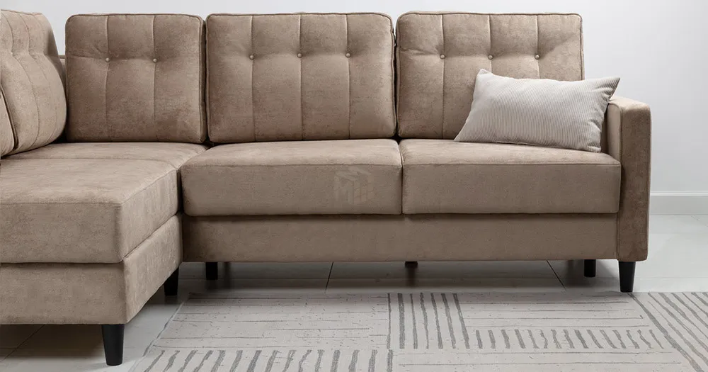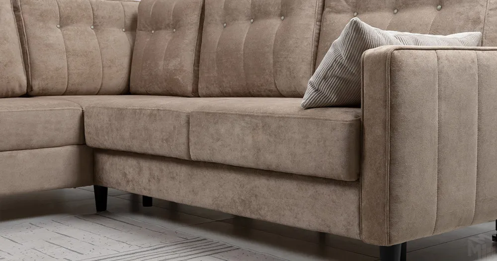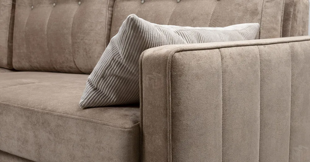Подушки имеют трапециевидную форму, с утолщением к низу для комфорта посадки. Кант по всему периметру подушек, декоративные утяжки металлическими пуговицами, вертикальная стежка.