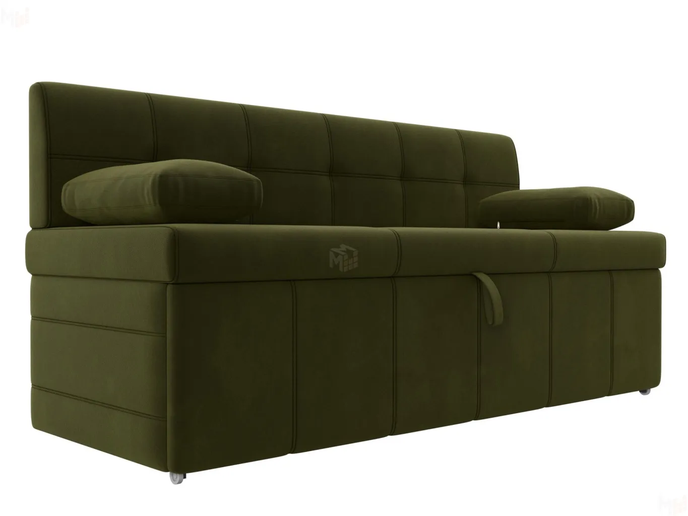 Лео – прямой диванчик для маленькой кухни, способный в считанные минуты превратиться в удобную односпальную кровать. Спинка высокая, прямая, подлокотники выполнены в форме подушек. Изделие не займет много места. Габариты минимальны.