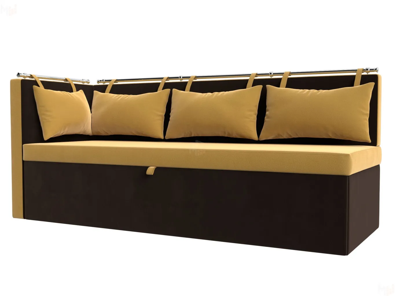 Метро – элегантный угловой диван с компактными параметрами. Для его размещения не потребуется много места. По дизайну схож со скамьей, дополненной небольшим углом. Обратите внимание на спинку, она украшена мягкими подушками с петельками, закрепленными на металлической трубе. Модель устойчива благодаря прочным пластиковым ножкам. -