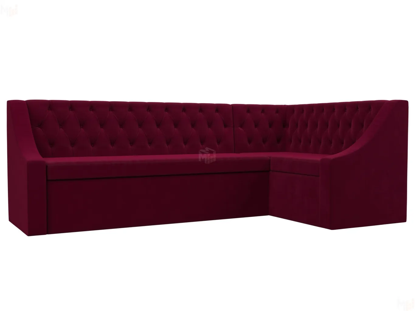 Мерлин – угловой кухонный диван хорошего качества по доступной цене. Он отлично подойдет для дополнения кухни в малогабаритной квартире. Высокая спинка, украшенная каретной стяжкой, снимет напряжение с позвоночника. Подлокотники помогут расслабить руки. Сиденье легко превращается в полноценную кровать. Дополнительную выгоду обеспечивает вместительный ящик размером 117х35х57 см под угловым сиденьем.