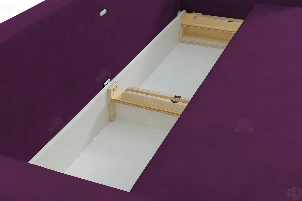 Хозяйки оценят не только неповторимый образ и внешний вид дивана, но и место для хранения пледа, одеяла или кухонной утвари в ящике под спальным местом.