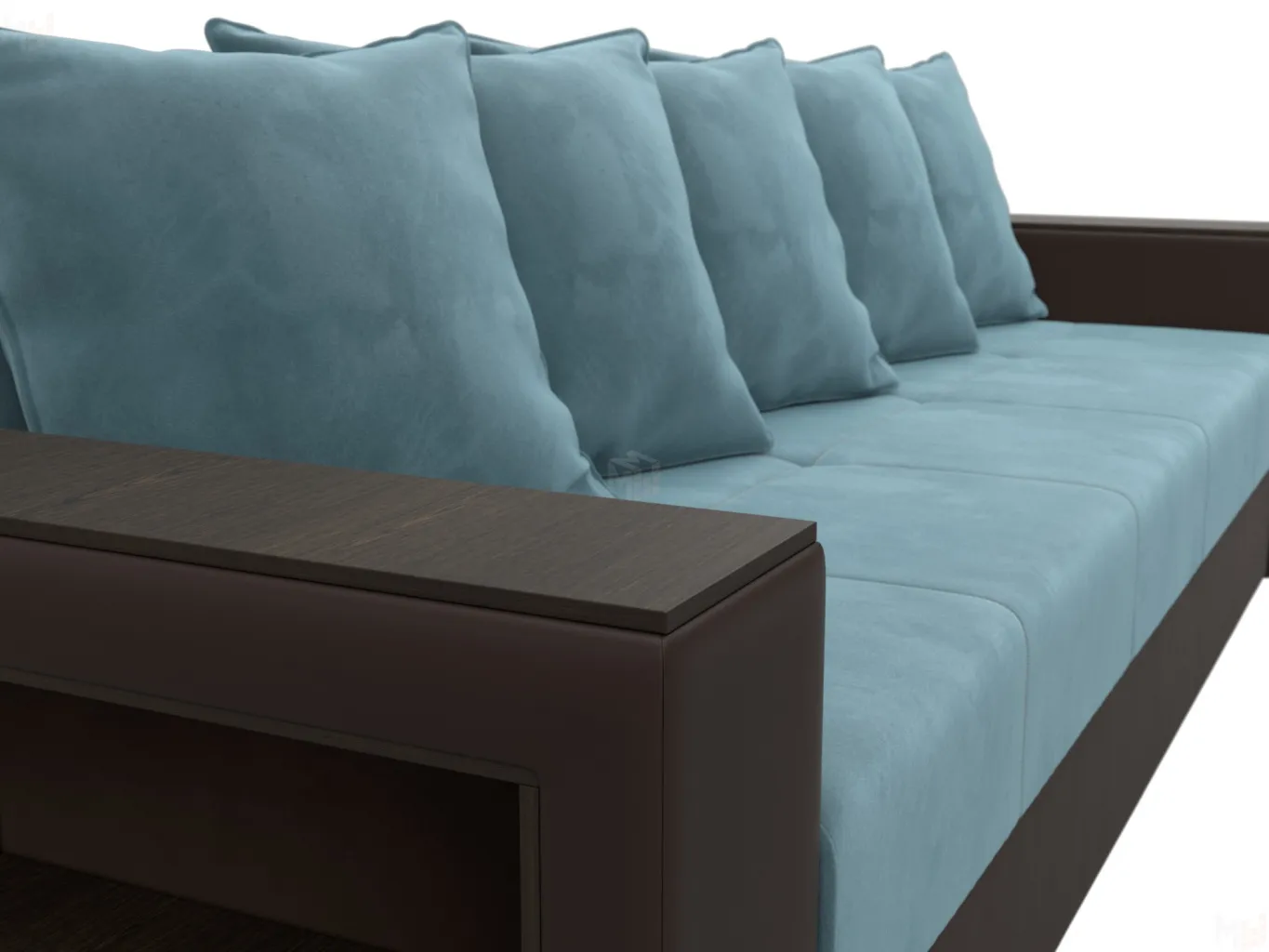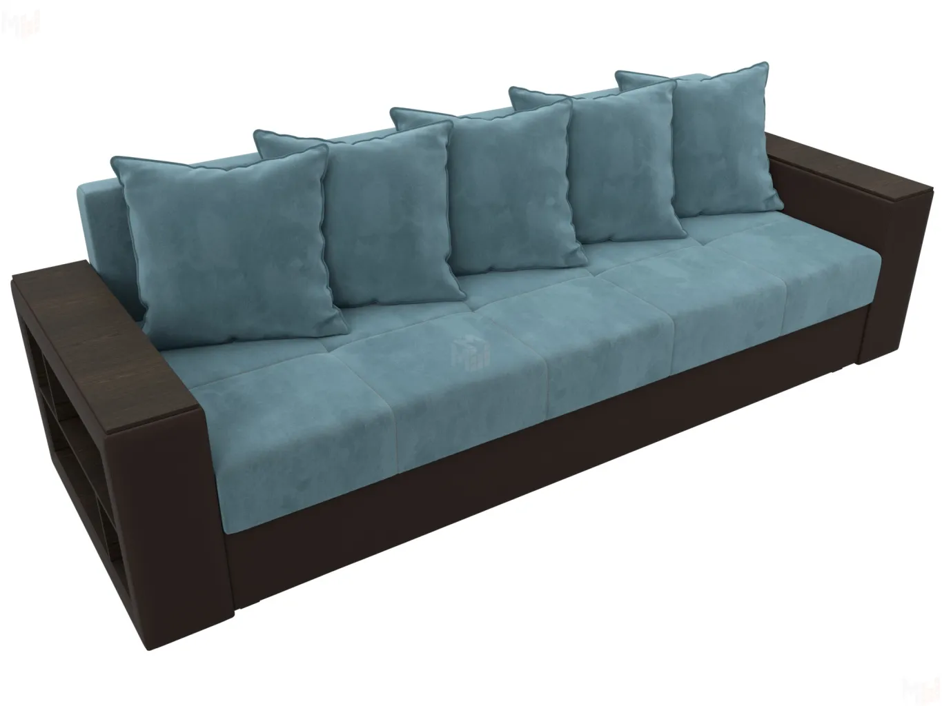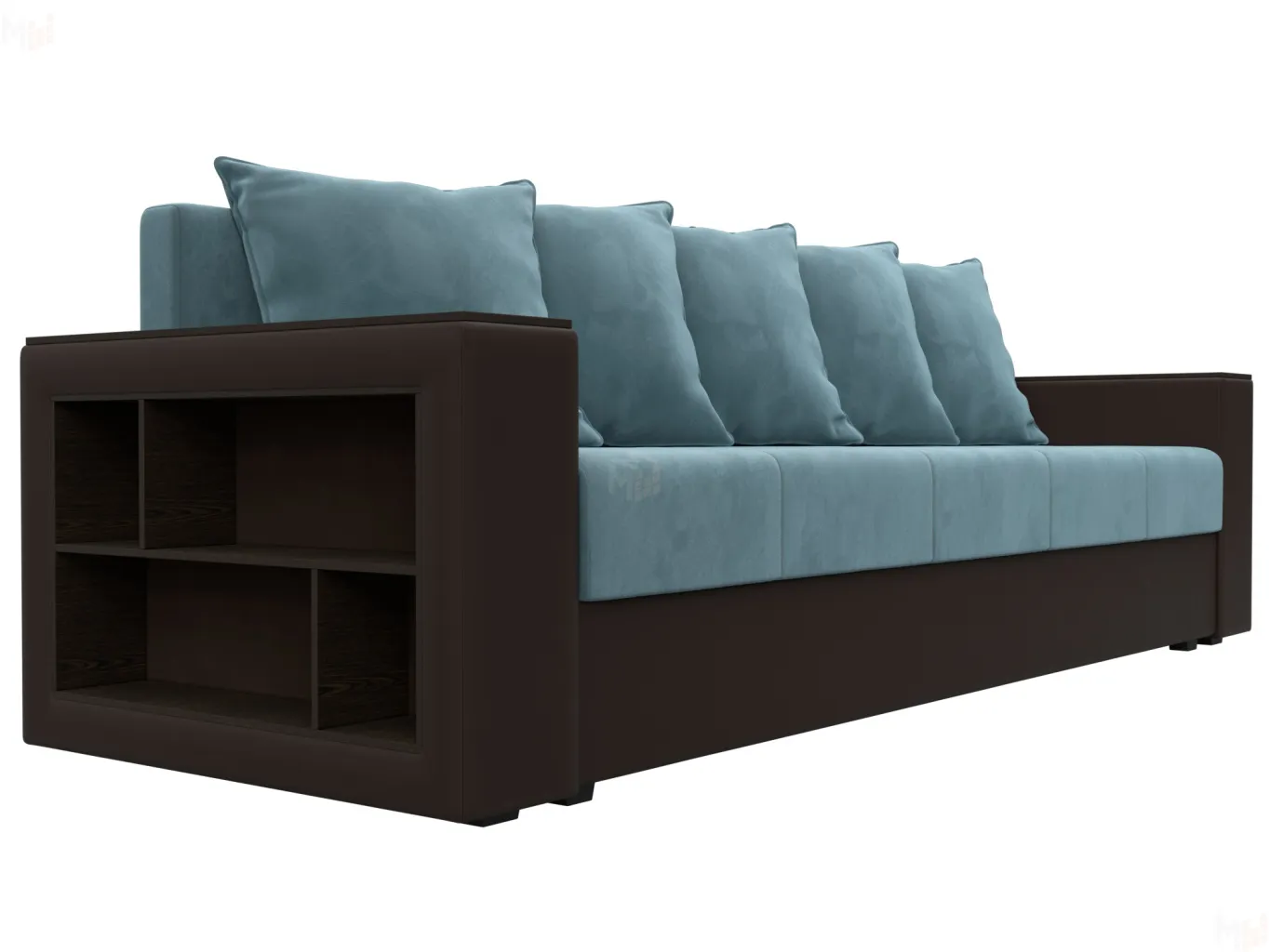 Диван прямой Дубай Лайт полки слева ( Бирюзовый\Коричневый )