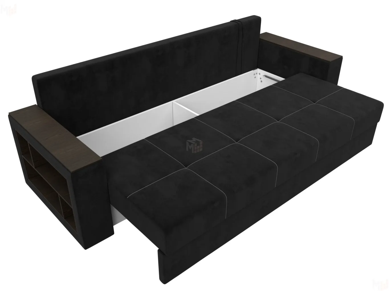 Диван прямой Дубай Лайт полки слева ( Черный )