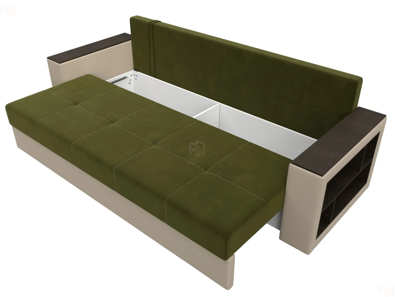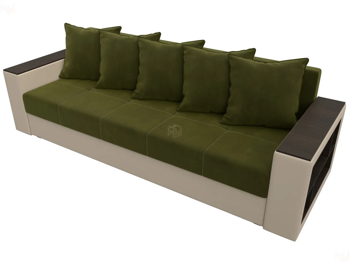 Диван прямой Дубай Лайт полки справа ( Зеленый\Бежевый )